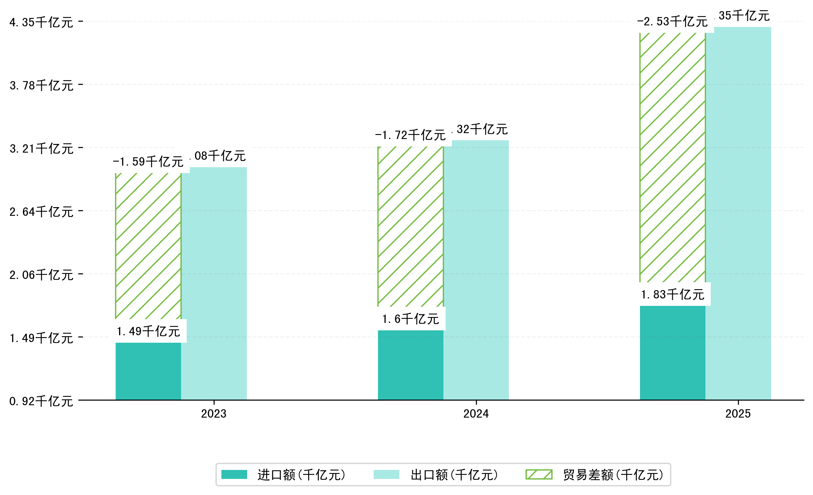以人民币计,2025年9月湖北省贸易差额为194,1962,5855万元(贸易顺差),相比上月减少了55,8206,3226万元,即7,7361,9215万美元;相比上年同期减少了47,1874,0400万元,同比减少-19.55%。