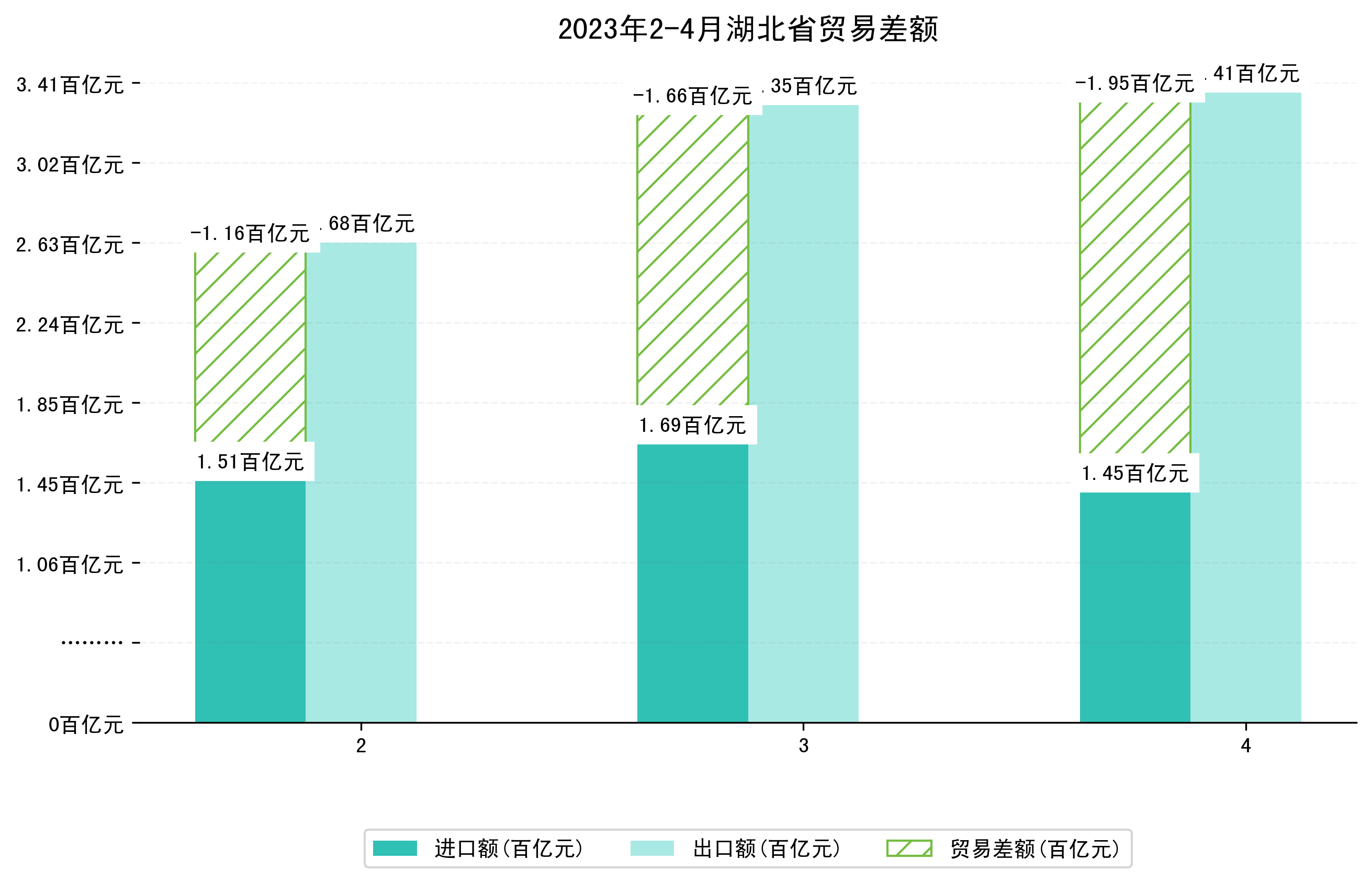 2023年4月湖北省进出口总额及进出口差额统计分析