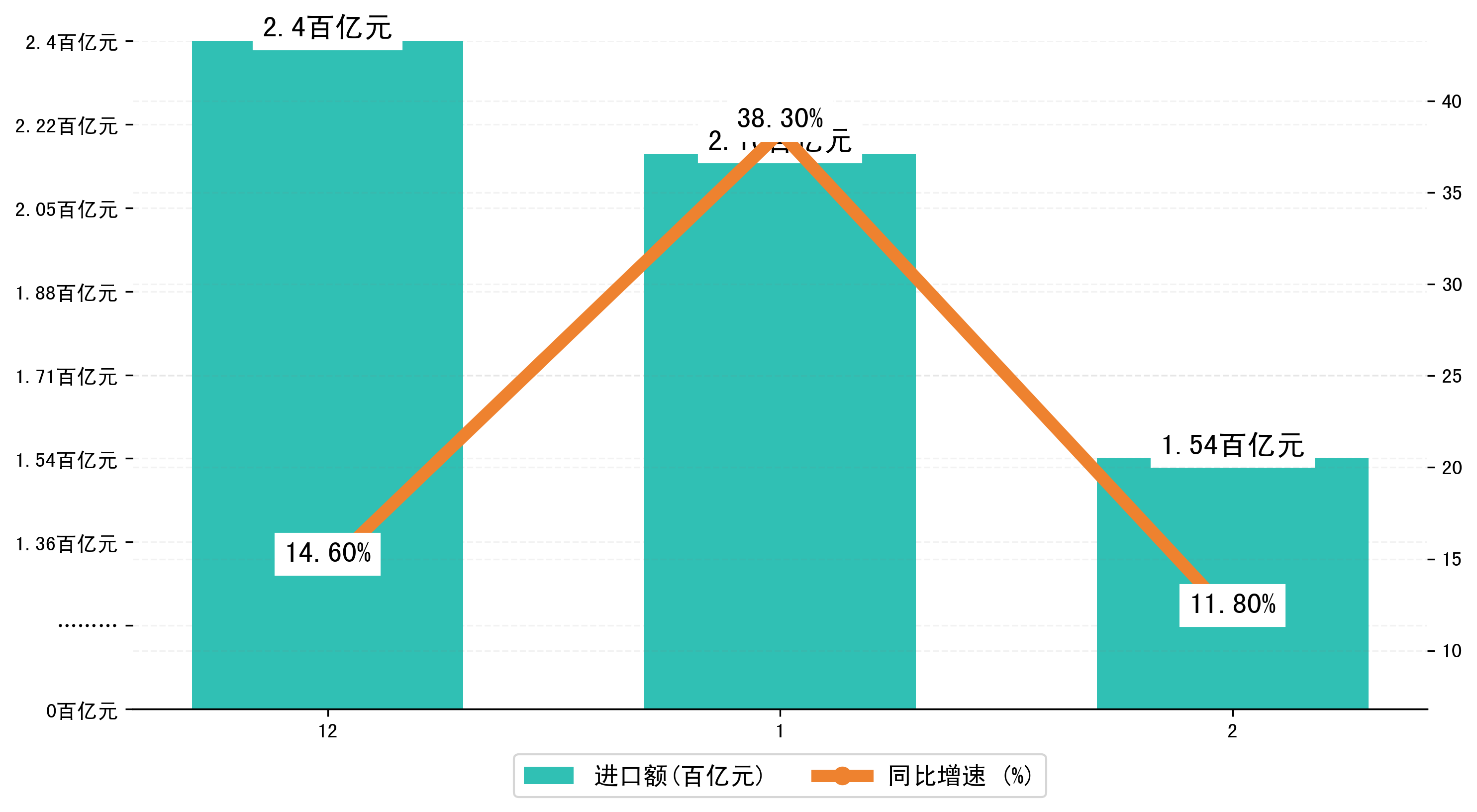 以美元计,2024年2月湖南省进口额为21,5979.2847万美元,相比上月减少了8,8479.788万美元;相比上年同期减少了4,6955.1752万美元,同比增加8.40%。
