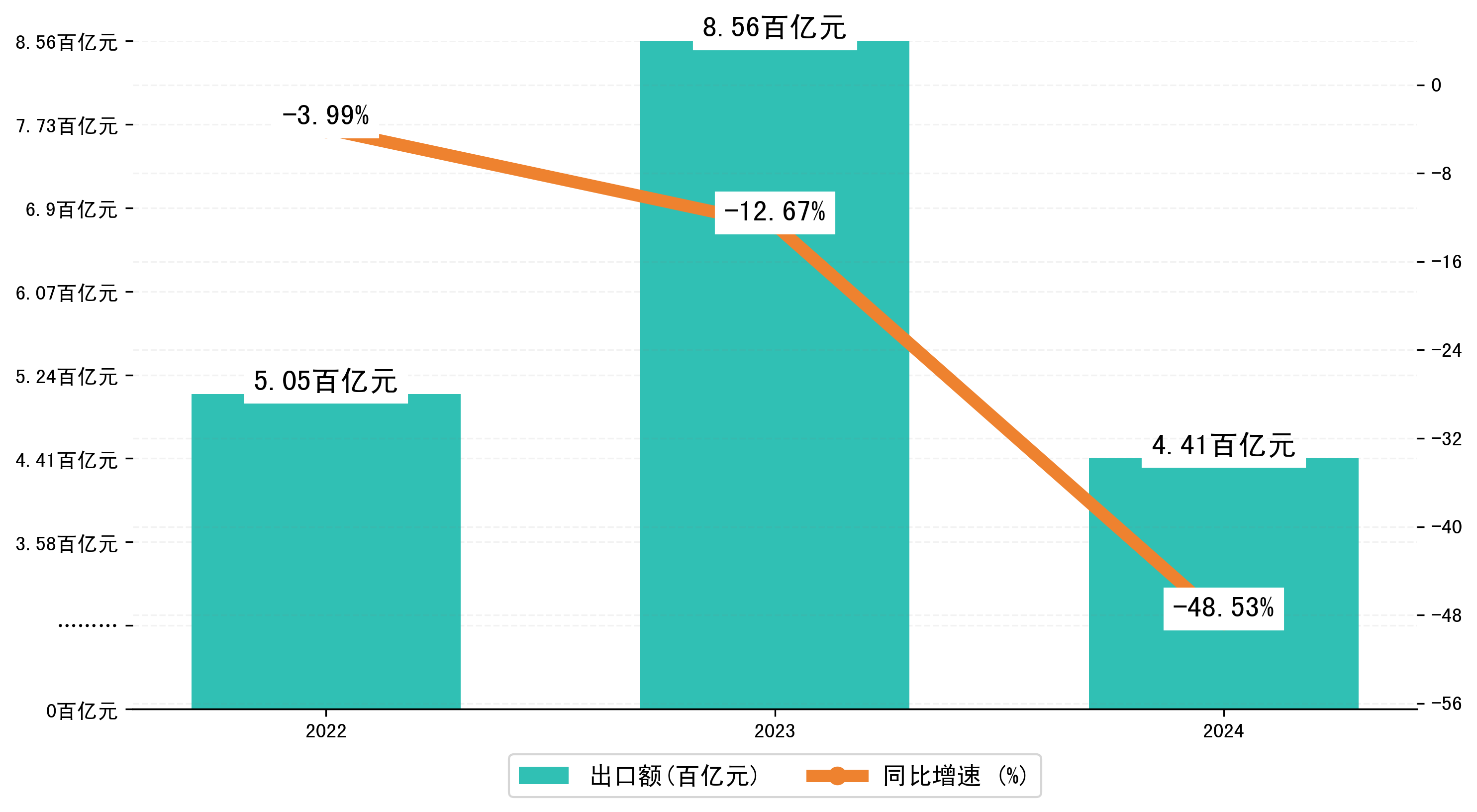 以人民币计,2024年1-2月湖南省出口额为440,8050.1752万元,相比上年同期减少了415,5485.98万元,同比减少了-47.70%。