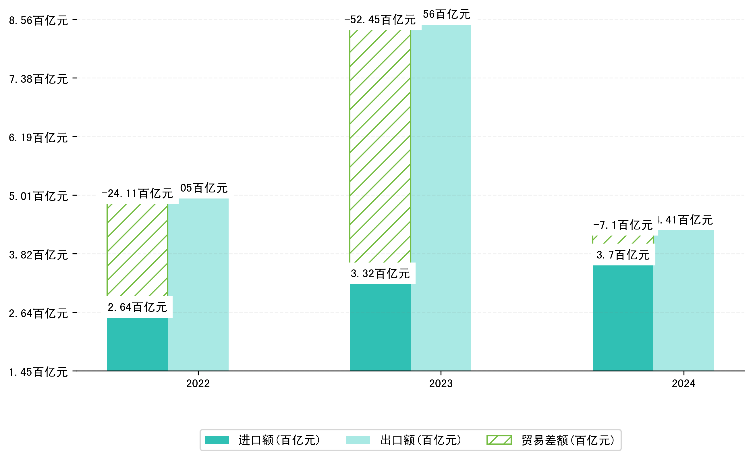 以美元计,2024年1-2月湖南省贸易差额为9,9977,6612万美元(贸易顺差),相比上年同期减少了65,7368,0255万美元,同比减少-86.8%。