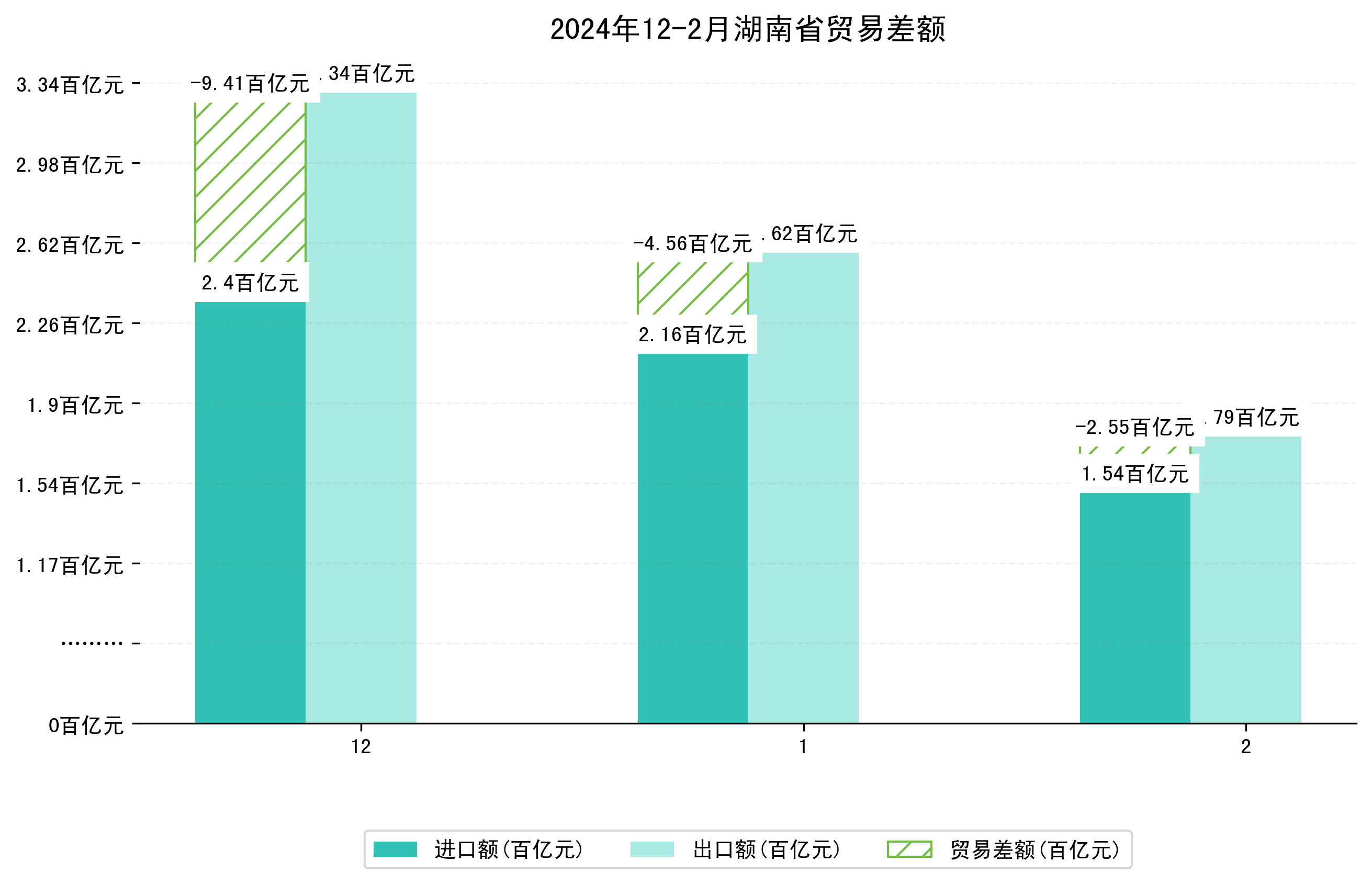 2024年2月湖南省进出口总额及进出口差额统计分析