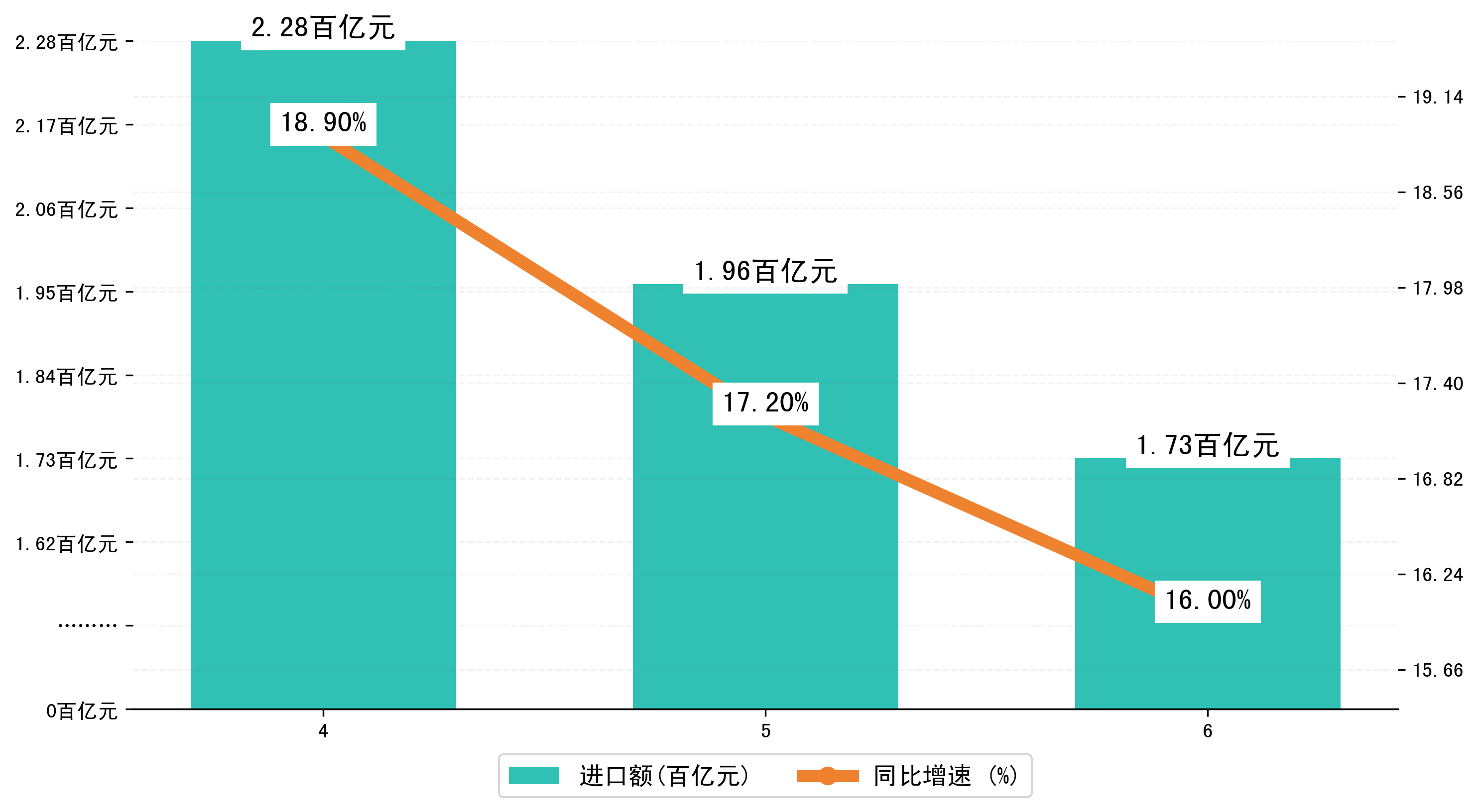 以人民币计,2024年6月湖南省进口额为173,2135.3812万元,相比上月减少了22,8365.7774万元;相比上年同期增加了13,5768.3629万元,同比增加了16.00%。