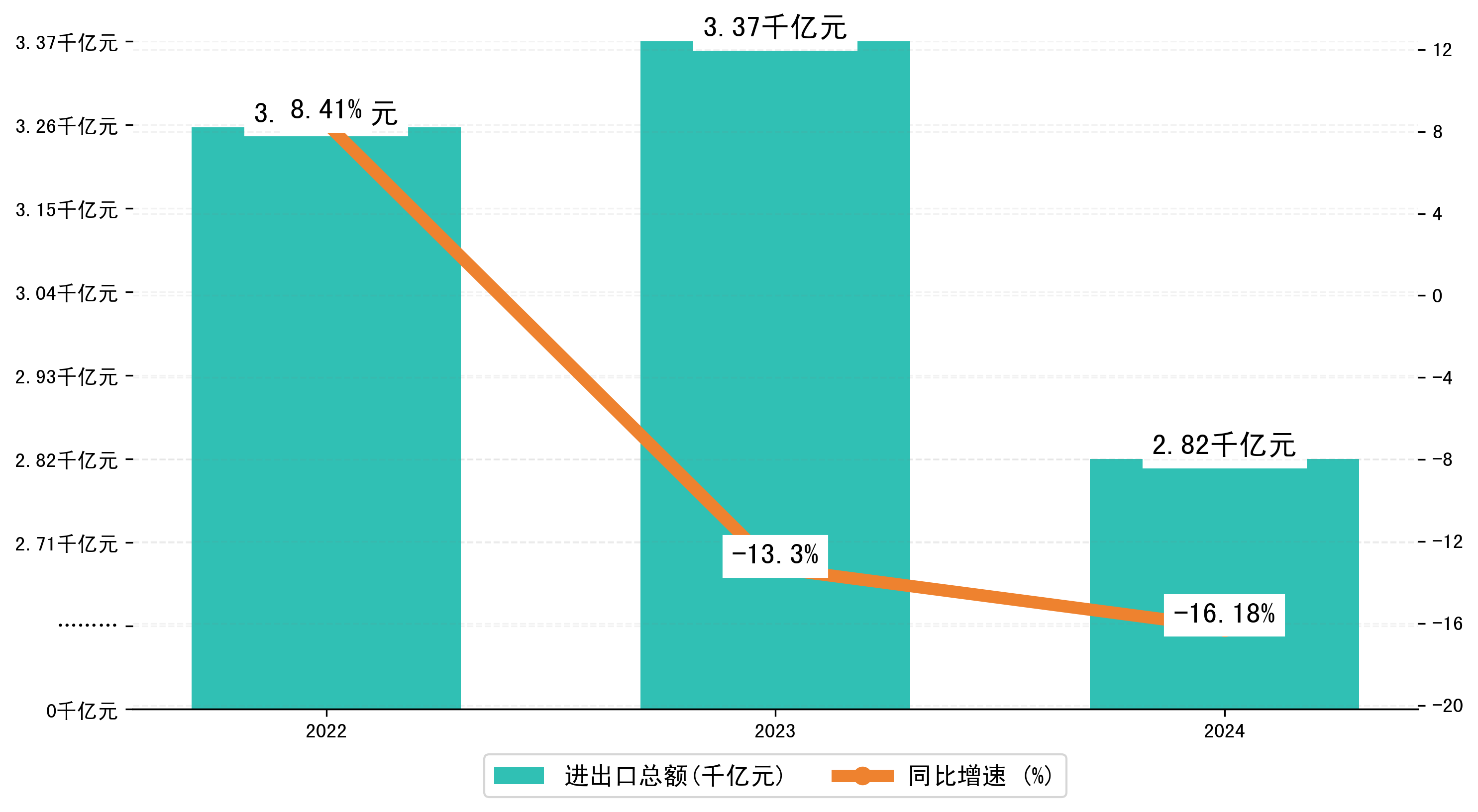 以人民币计,2024年1-6月湖南省进出口总额为2822,5775.6615万元,相比上年同期减少了544,9348.0118万元,同比减少了-14.60%。