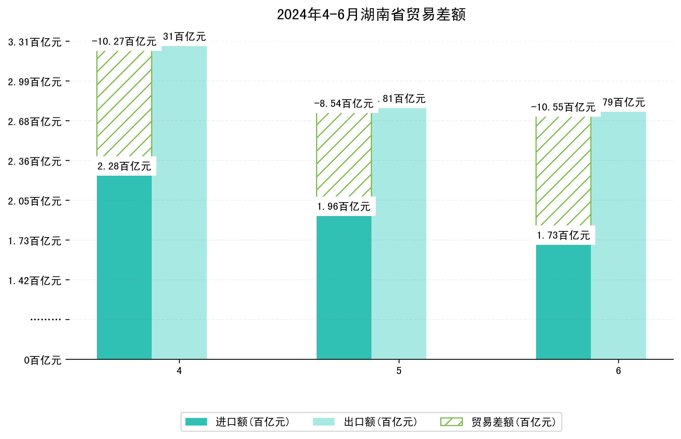 2024年6月湖南省进出口总额及进出口差额统计分析