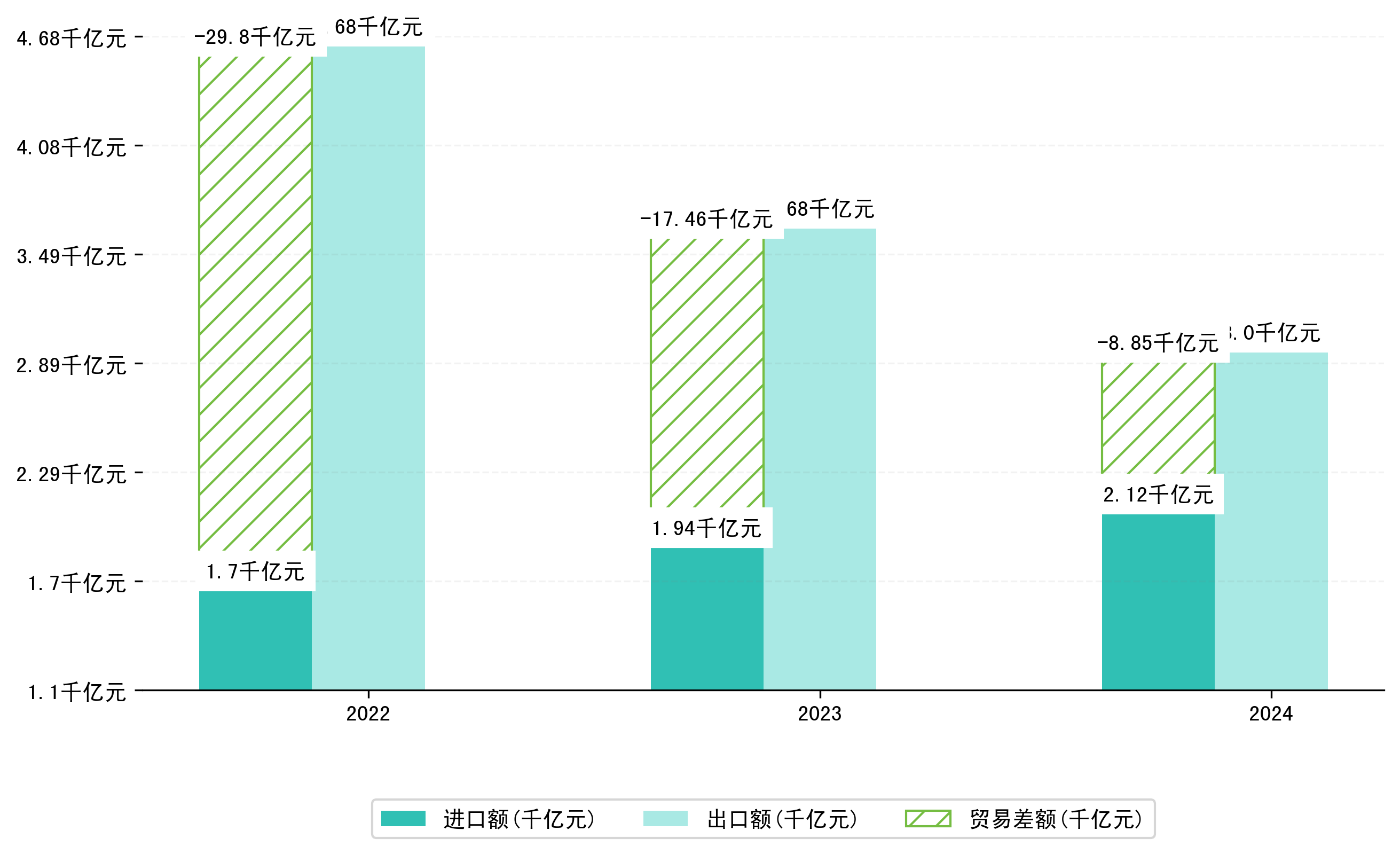 以人民币计,2024年11月湖南省贸易差额为73,8369,1953万元(贸易顺差),相比上月减少了29,9028,3386万元,即4,1874,9710万美元;相比上年同期减少了109,2306,3846万元,同比减少-59.67%。