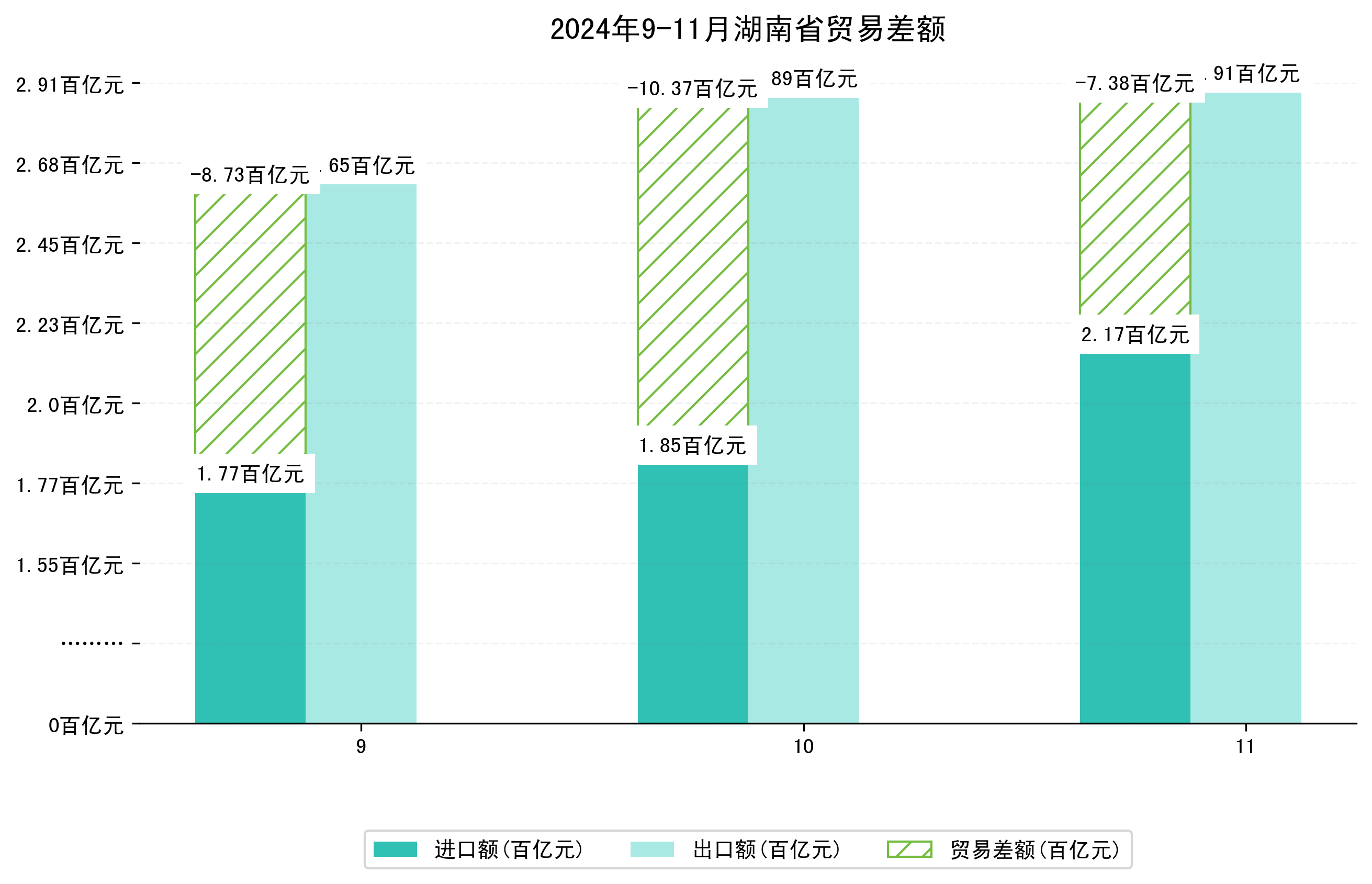 2024年11月湖南省进出口总额及进出口差额统计分析