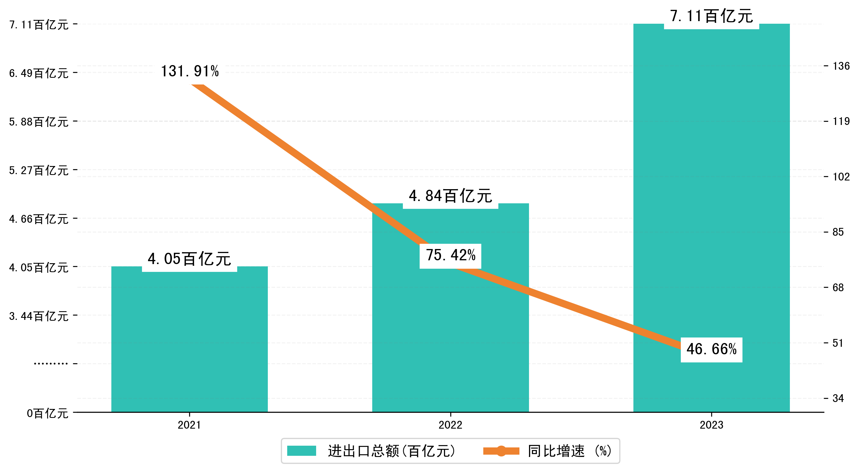 以人民币计,2023年1月湖南省进出口总额为710,5350.1839万元,相比上月增加了9,9329.1734万元;相比上年同期增加了226,0428.9319万元,同比增加了47.10%。