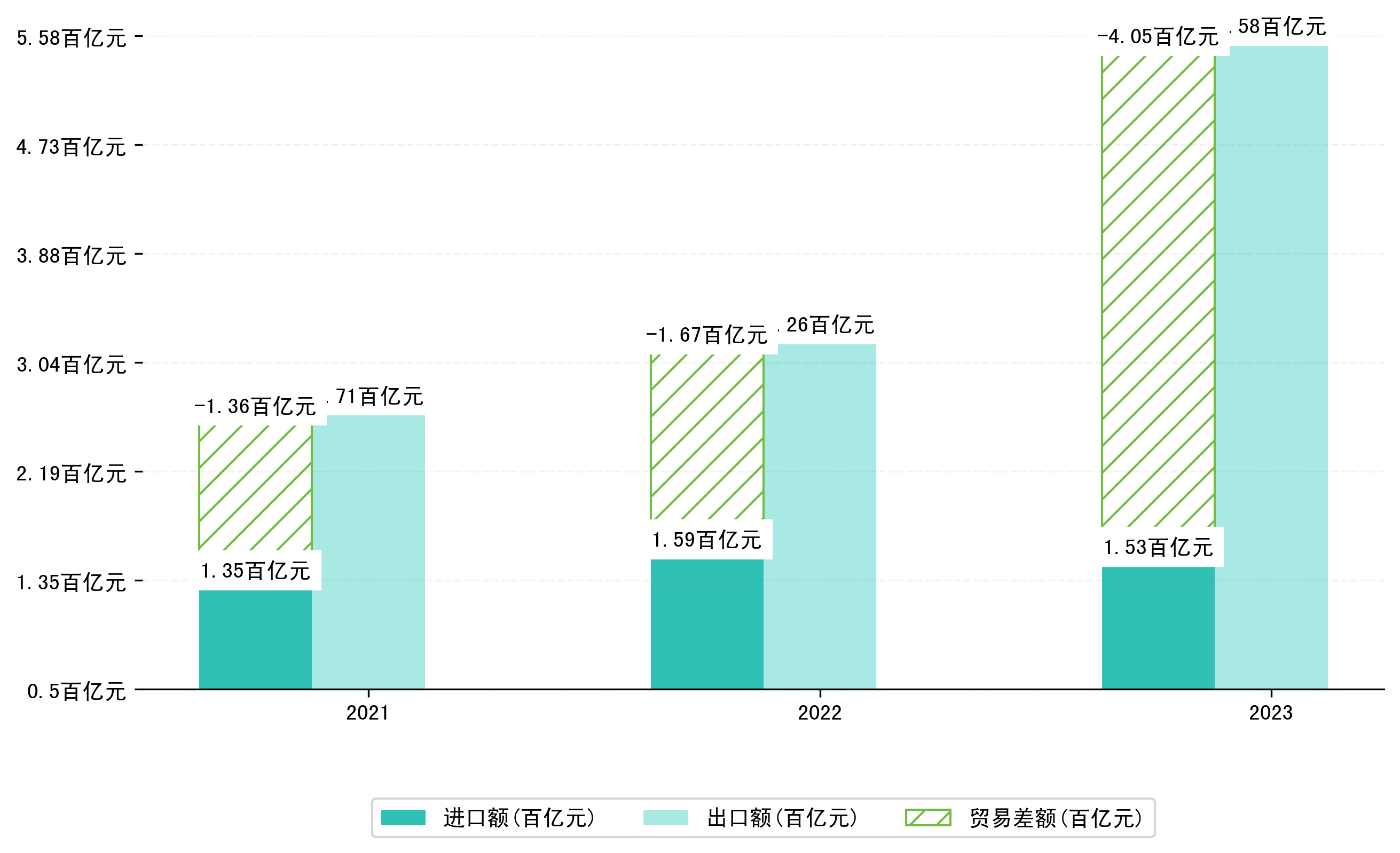 以人民币计,2023年1月湖南省贸易差额为404,7519,8855万元(贸易顺差),相比上月增加了124,5792,4877万元,即18,2744,0180万美元;相比上年同期增加了237,5552,2625万元,同比增加142.08%。