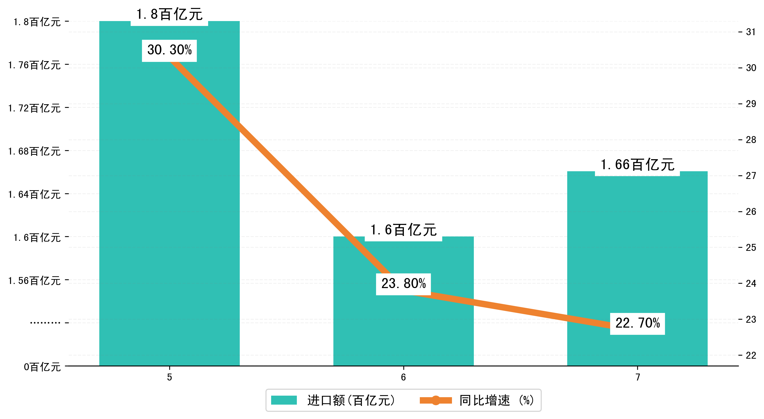 以人民币计,2023年7月湖南省进口额为165,6892.2162万元,相比上月增加了6,0525.1979万元;相比上年同期增加了15,7813.4794万元,同比增加了22.70%。