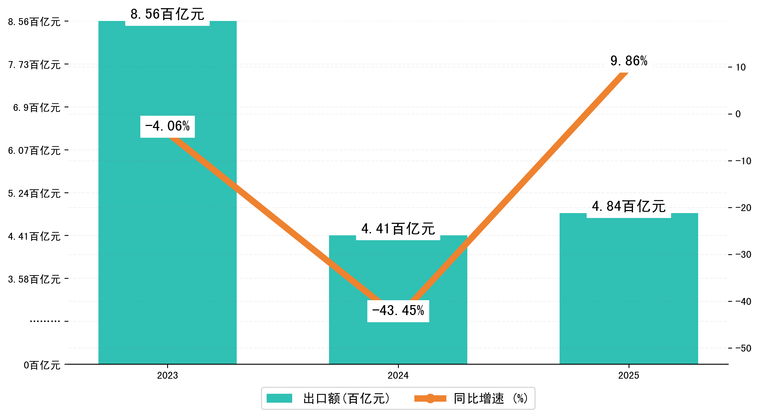 以人民币计,2025年1-2月湖南省出口额为484,2845.2496万元,相比上年同期增加了43,4795.0744万元,同比增加了10.20%。