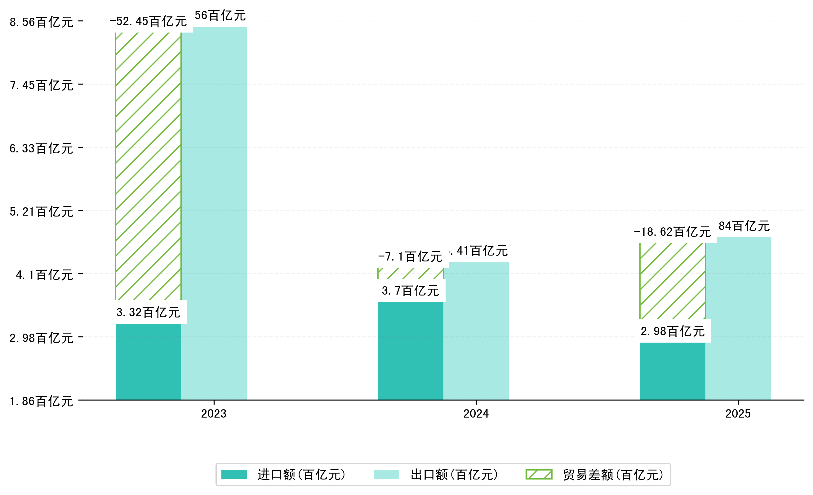 以美元计,2025年2月湖南省贸易差额为11,0184,0797万美元(贸易顺差),相比上月减少了3,8710,2889万美元;相比上年同期增加了7,4302,0400万美元,同比增加207.07%。