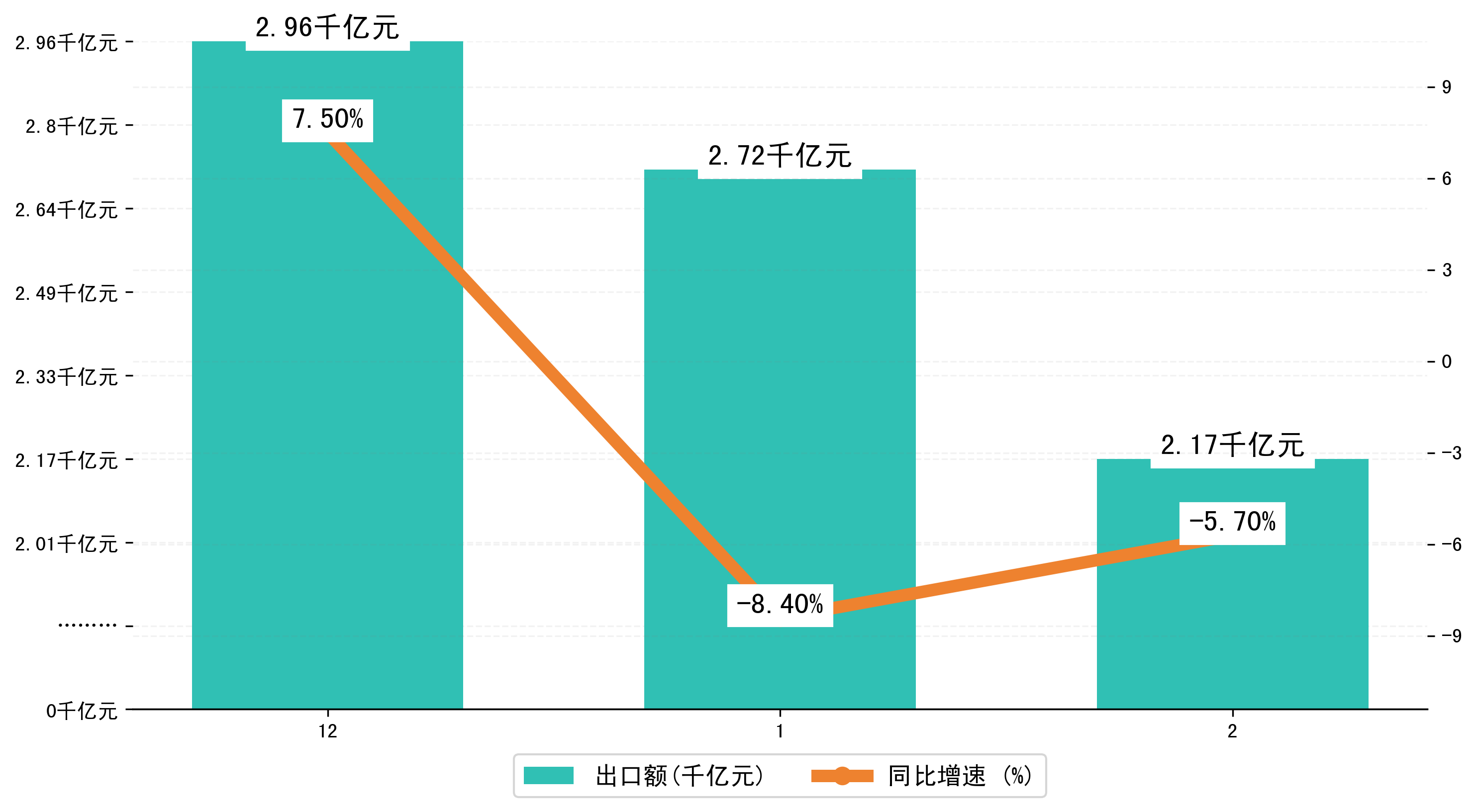 一、2023年2月江苏省单月出口总额及进出口差额统计分析
