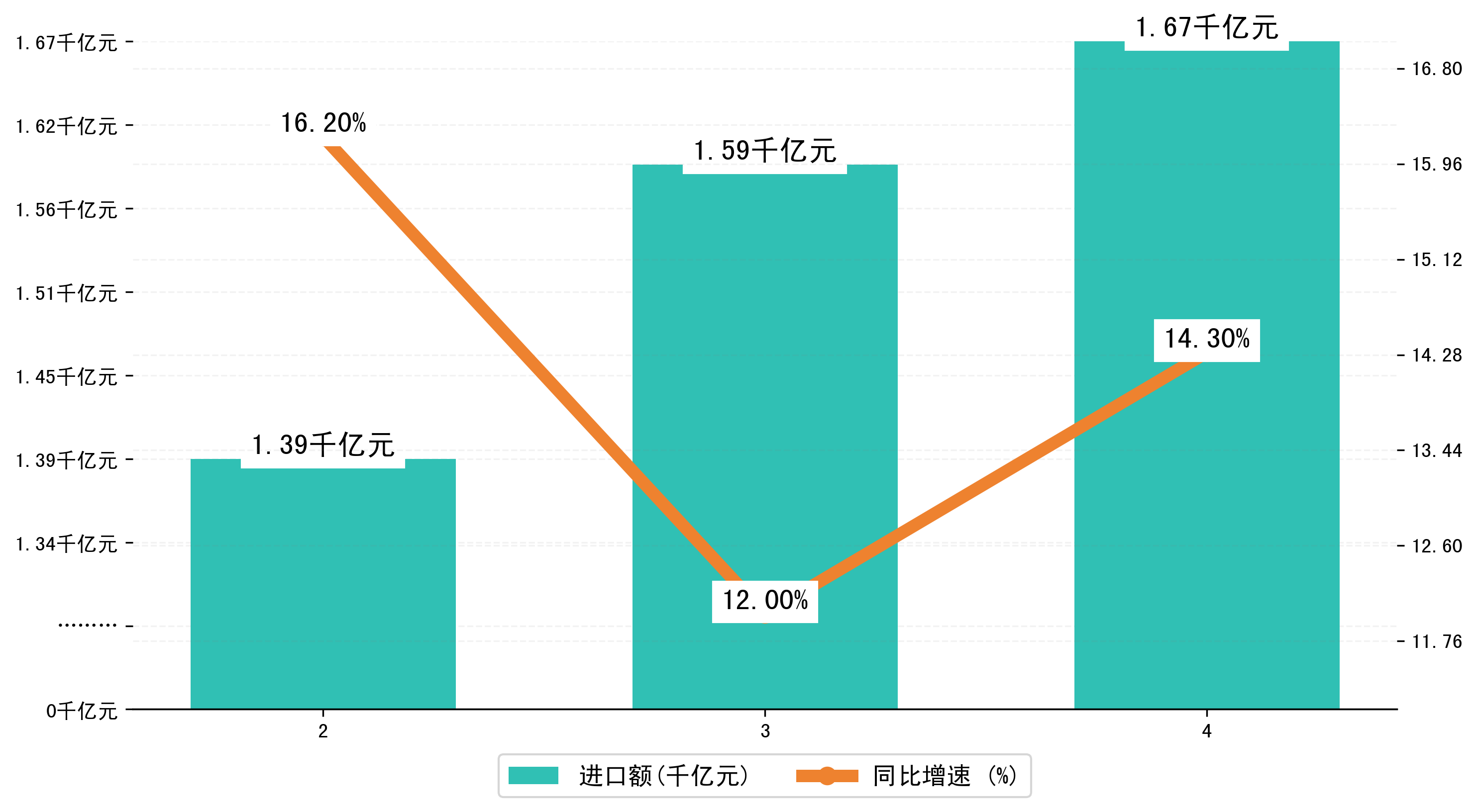 以美元计,2024年1-4月江苏省进口额为894,4867.6725万美元,相比上年同期增加了79,4925.4396万美元,同比增加10.50%。