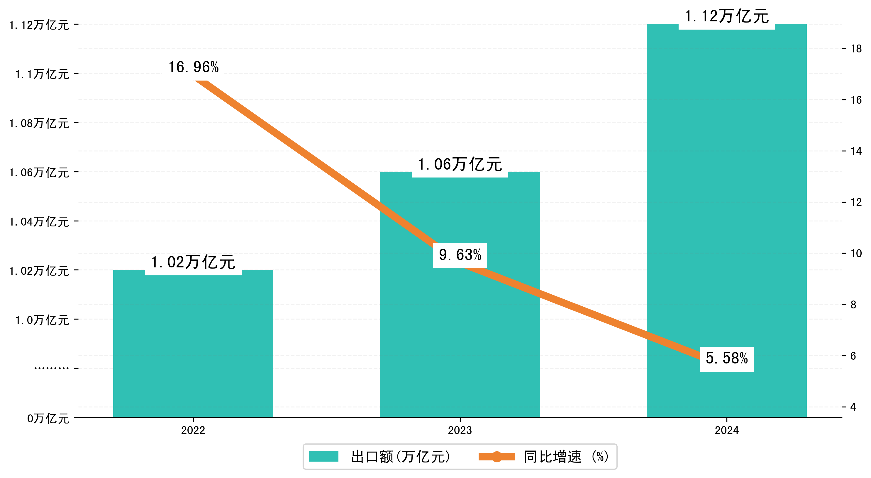 以美元计,2024年1-4月江苏省出口额为1576,8164.632万美元,相比上年同期增加了31,5750.6987万美元,同比增加3.00%。