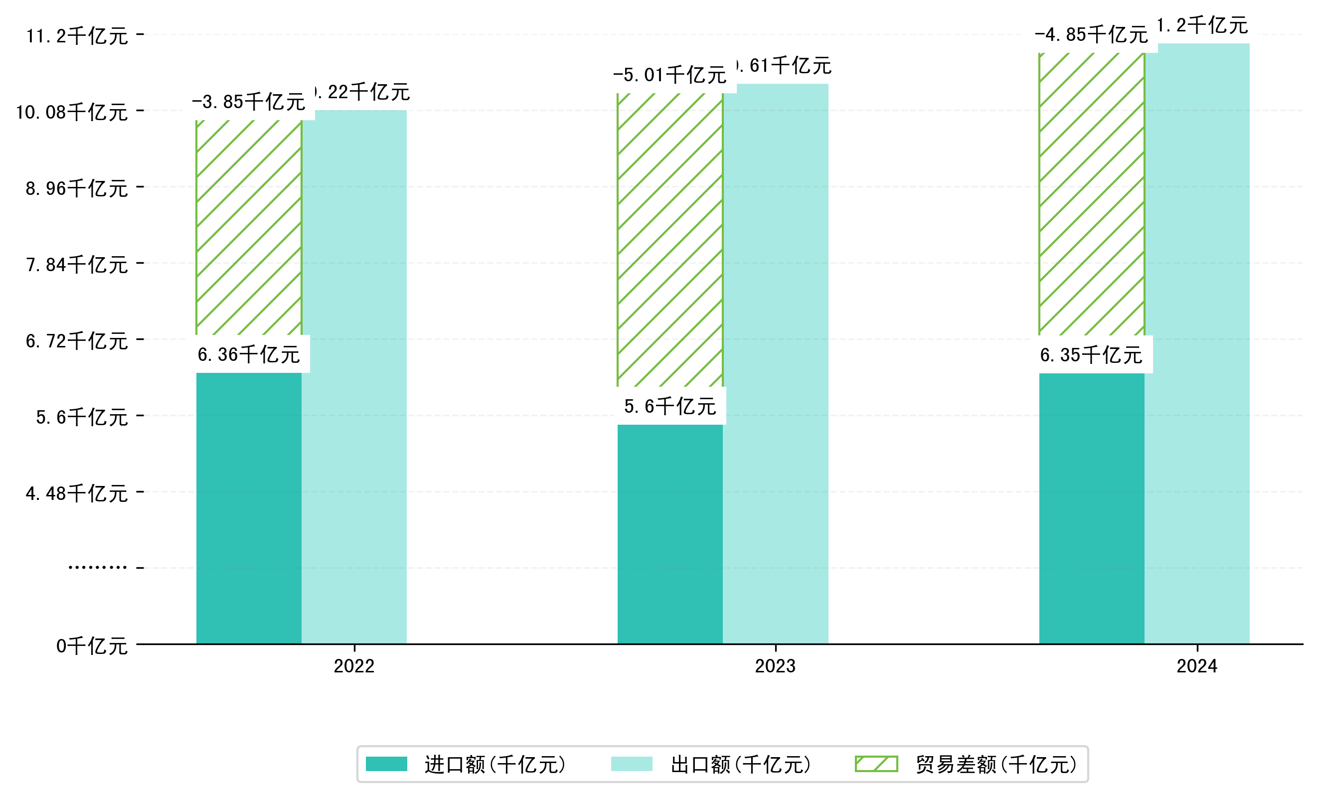 以人民币计,2024年4月江苏省贸易差额为1239,5849,3571万元(贸易顺差),相比上月减少了44,8653,9025万元,即6,1267,4584万美元;相比上年同期减少了163,7542,6044万元,同比减少-11.67%。