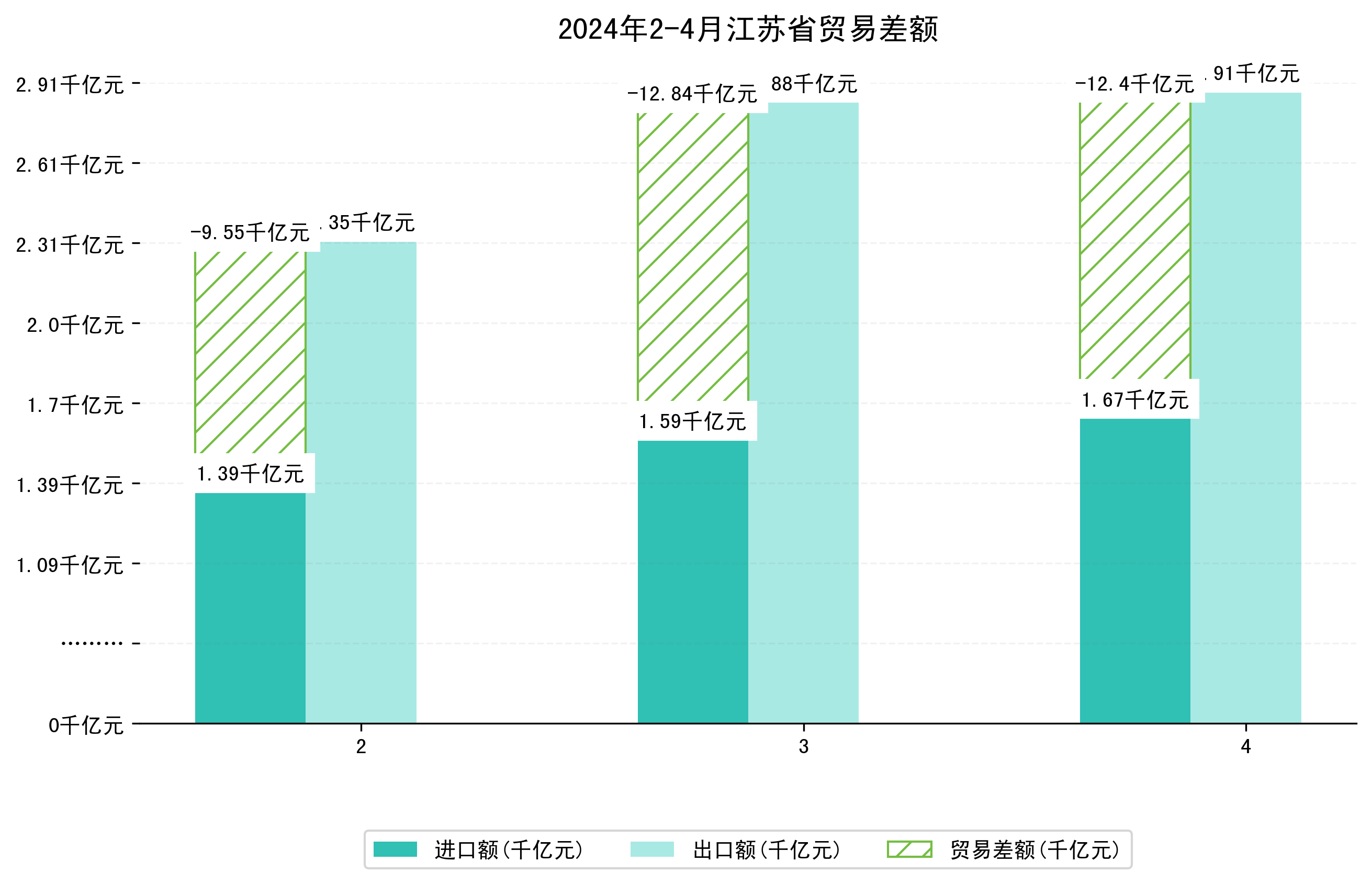 2024年4月江苏省进出口总额及进出口差额统计分析