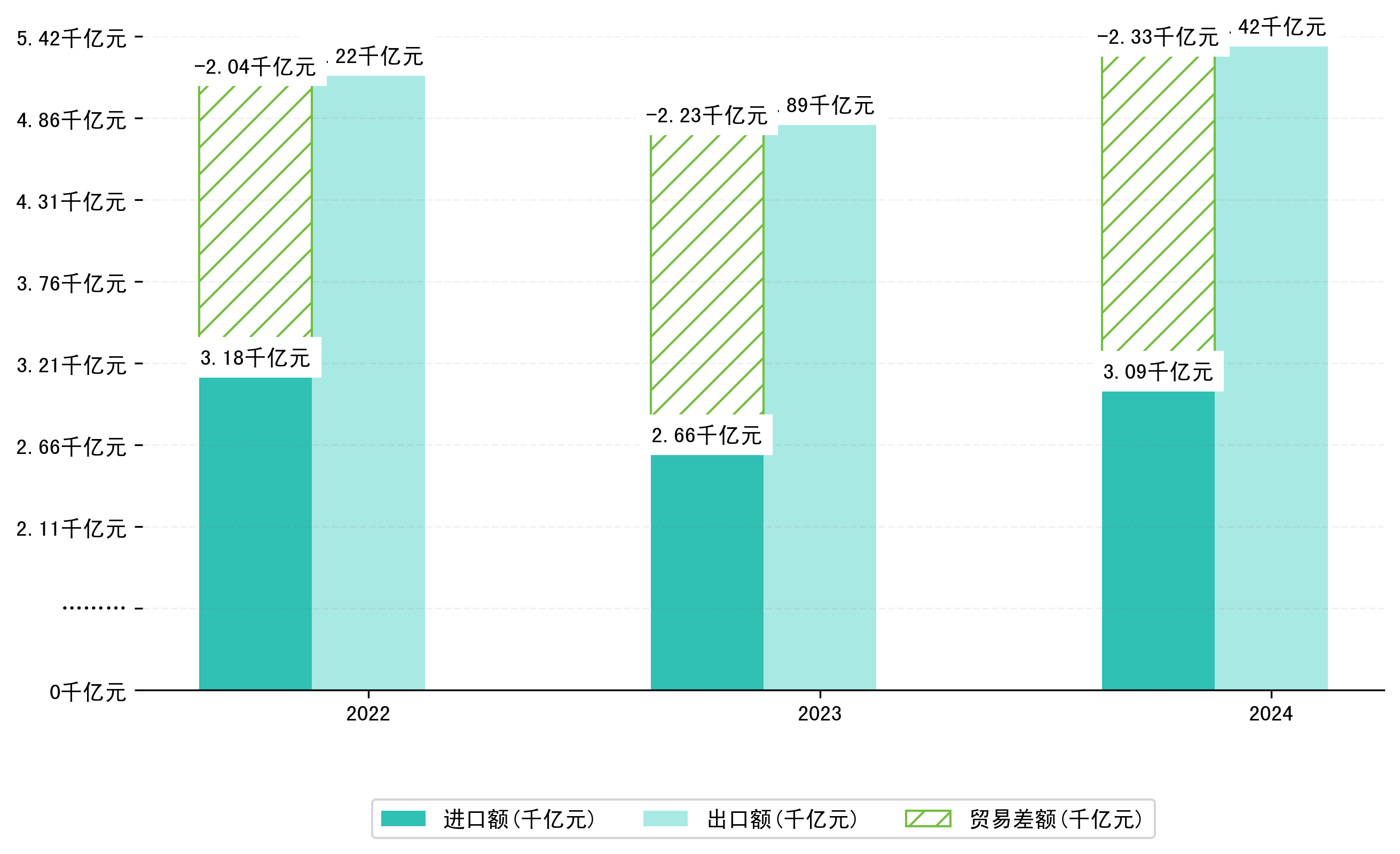 以人民币计,2024年1-2月江苏省贸易差额为2328,2606,6075万元(贸易顺差),相比上年同期增加了97,6758,3391万元,同比增加4.38%。