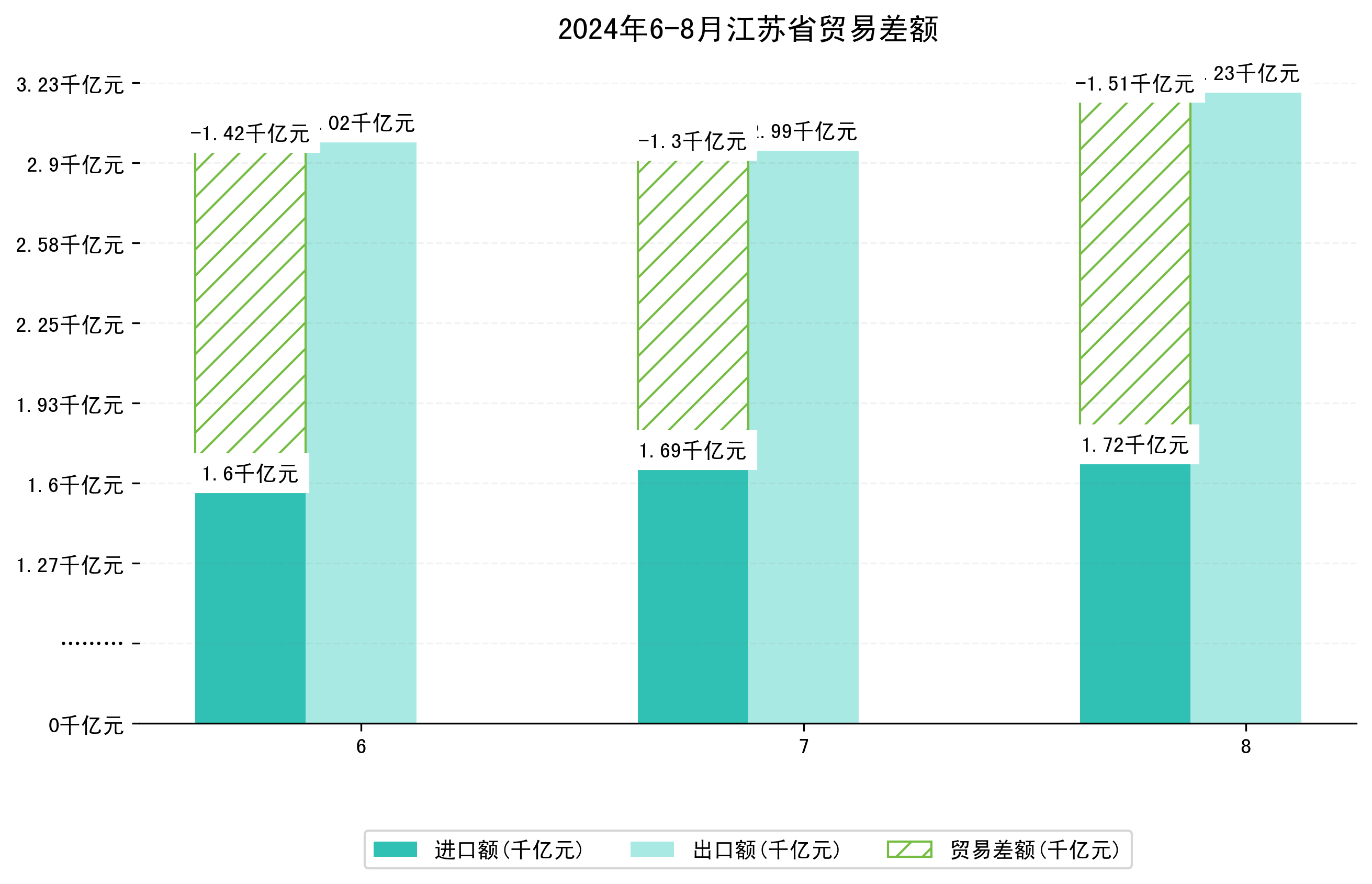 2024年8月江苏省进出口总额及进出口差额统计分析