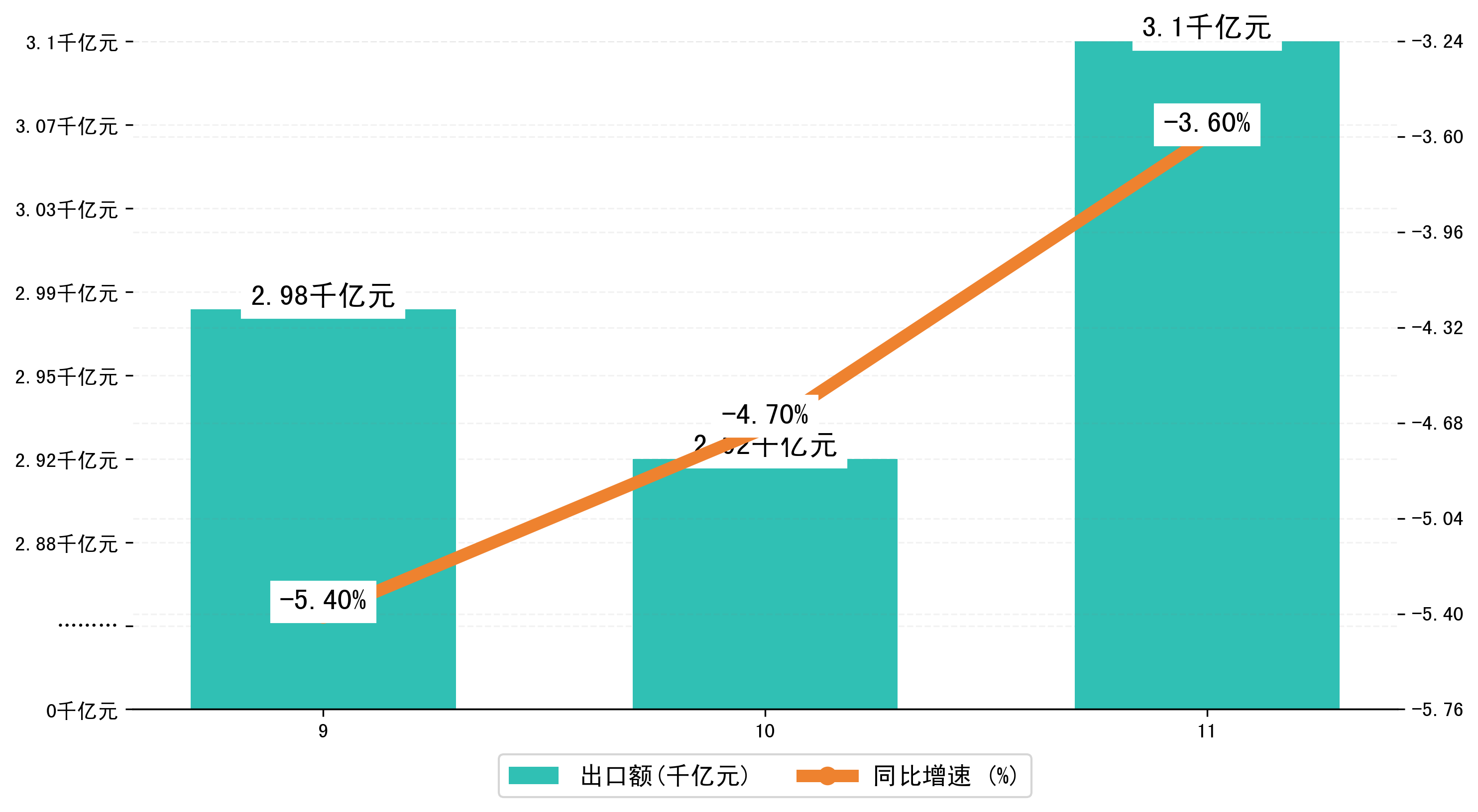 一、2023年11月江苏省单月出口总额及进出口差额统计分析