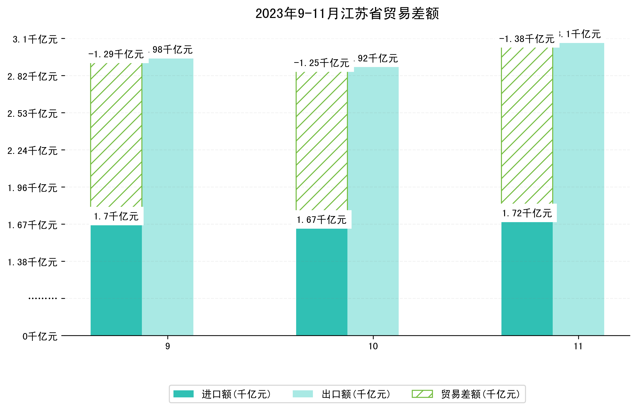 2023年11月江苏省进出口总额及进出口差额统计分析