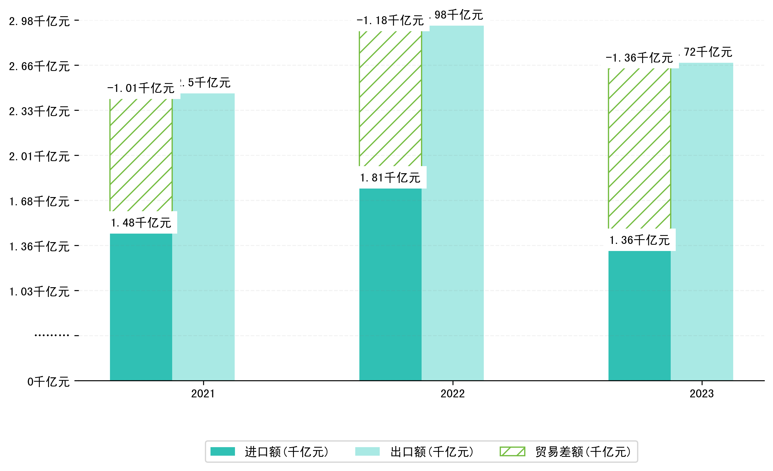 以人民币计,2023年1月江苏省贸易差额为1358,6550,0737万元(贸易顺差),相比上月减少了53,3879,3664万元,即5,4040,7132万美元;相比上年同期增加了182,2827,2981万元,同比增加15.5%。