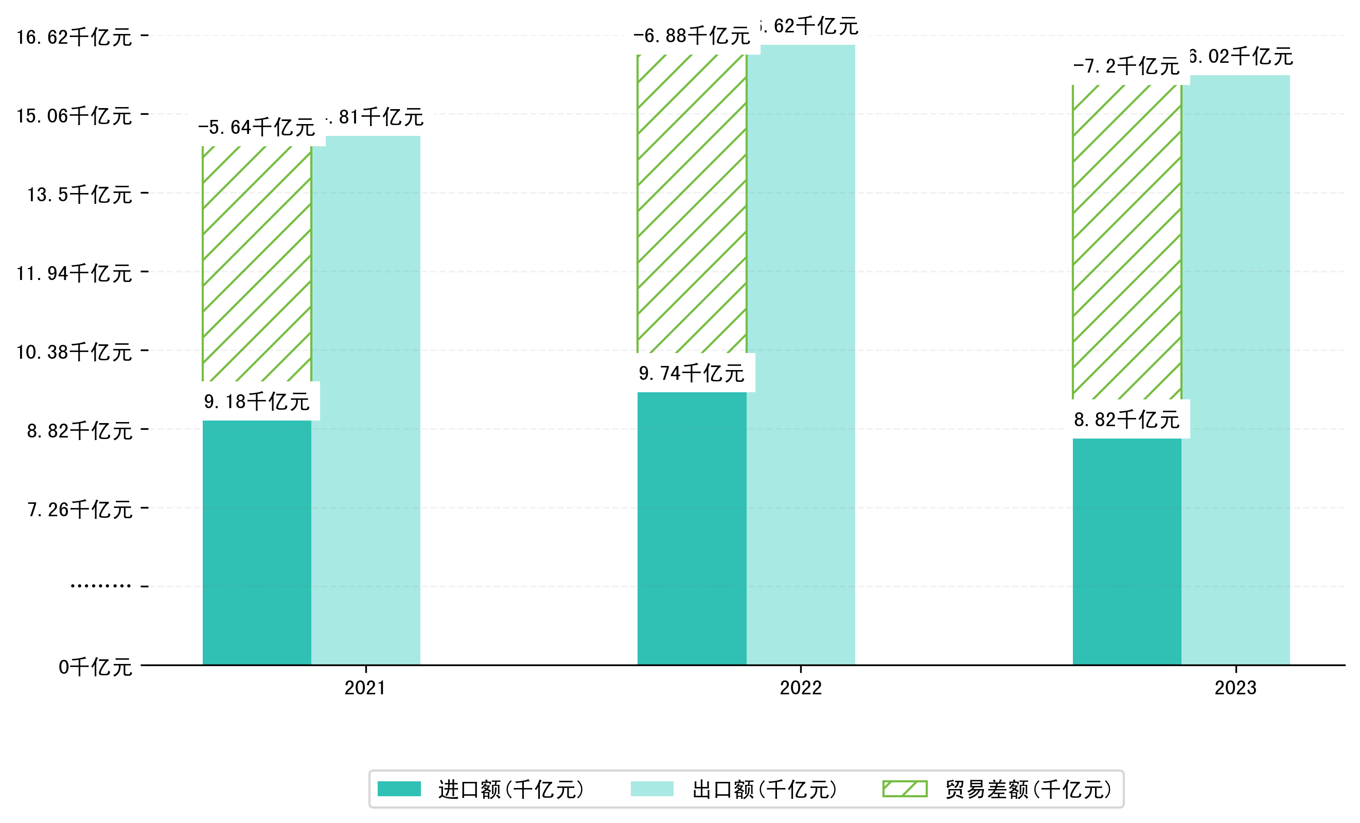 以美元计,2023年1-6月江苏省贸易差额为1047,4834,0424万美元(贸易顺差),相比上年同期增加了21,5963,6143万美元,同比增加-2.02%。