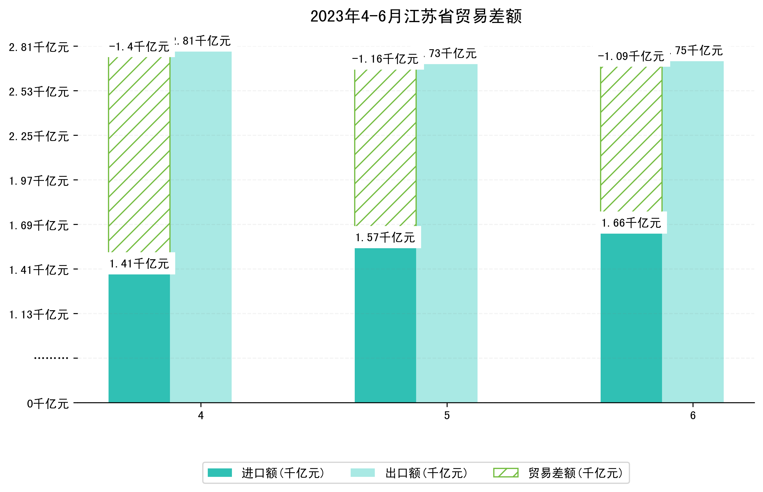 2023年6月江苏省进出口总额及进出口差额统计分析