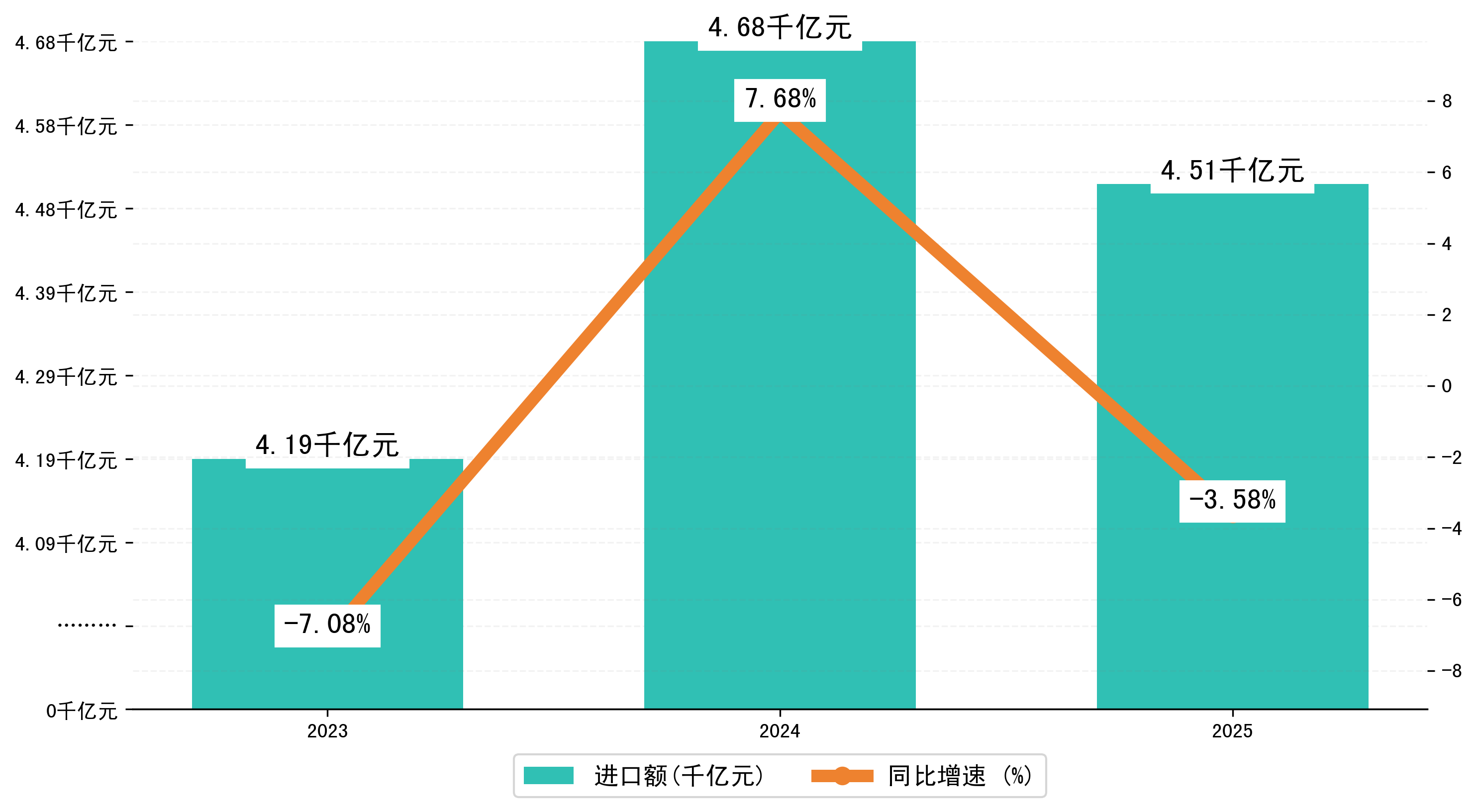 以人民币计,2025年1-3月江苏省进口额为4512,4432.5653万元,相比上年同期减少了167,4573.3622万元,同比减少了-3.10%。