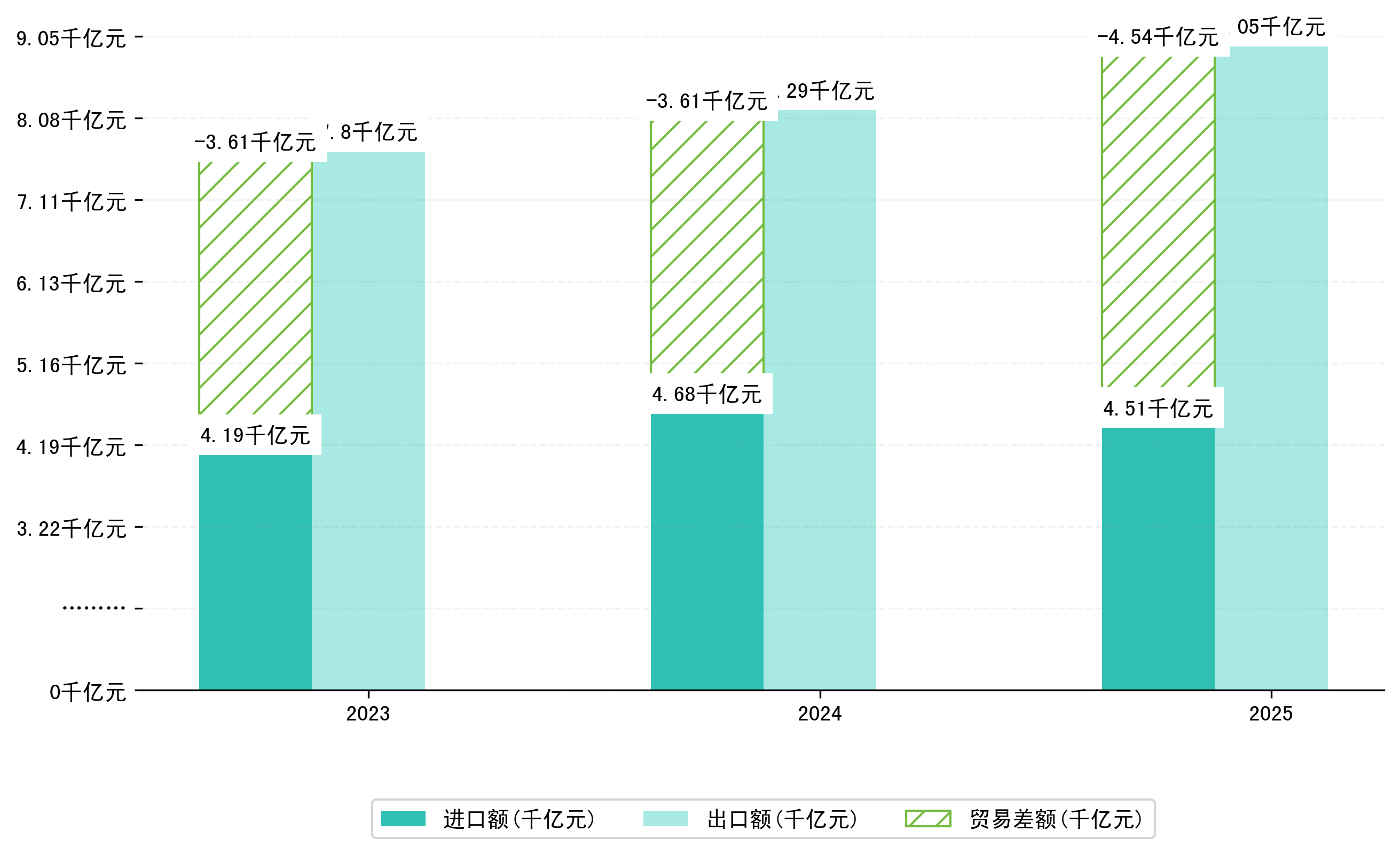 以人民币计,2025年1-3月江苏省贸易差额为4537,4321,6794万元(贸易顺差),相比上年同期增加了926,0836,7985万元,同比增加25.64%。