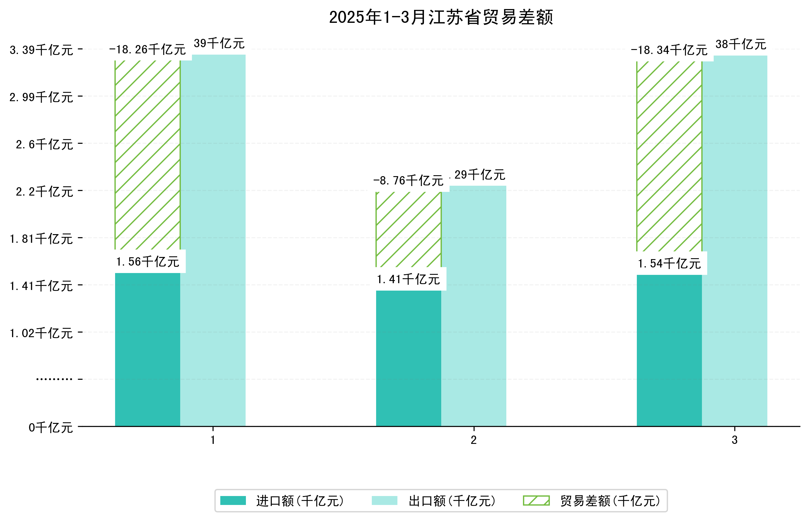 2025年3月江苏省进出口总额及进出口差额统计分析