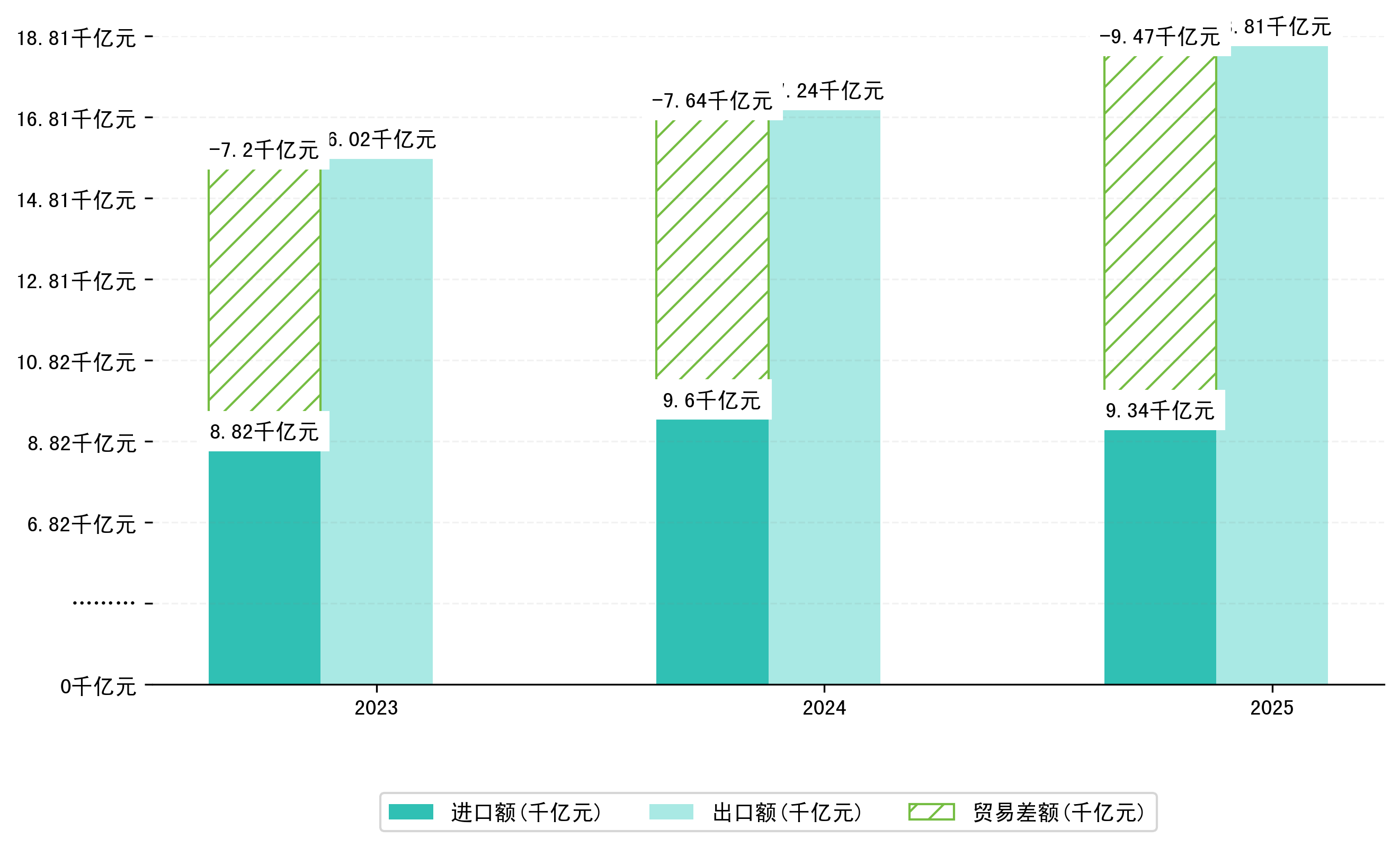 以人民币计,2025年1-6月江苏省贸易差额为9469,8258,2940万元(贸易顺差),相比上年同期增加了1831,1031,0560万元,同比增加23.97%。