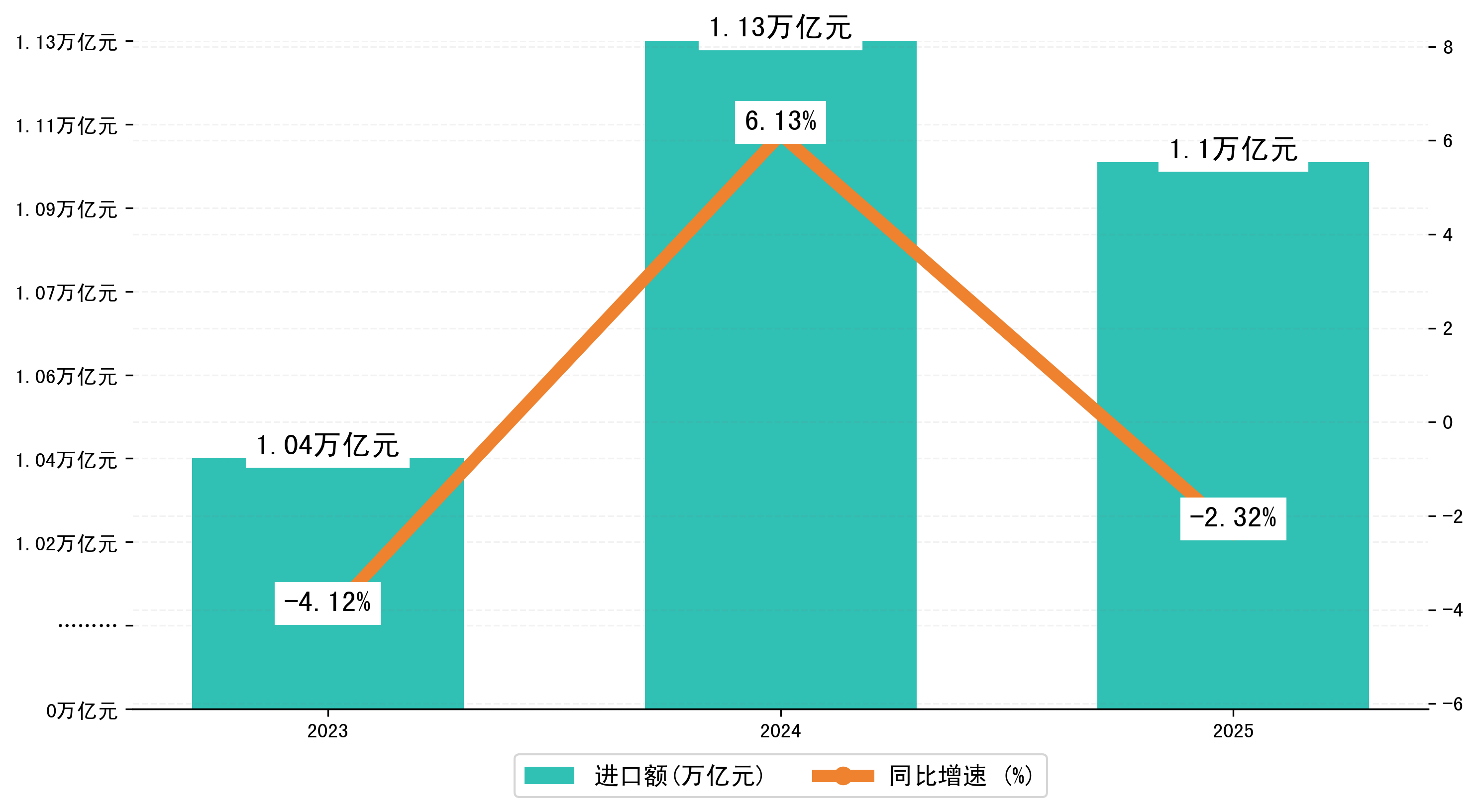 以人民币计,2025年1-7月江苏省进口额为1,1023,1781.6964万元,相比上年同期减少了261,6674.1472万元,同比减少了-2.10%。