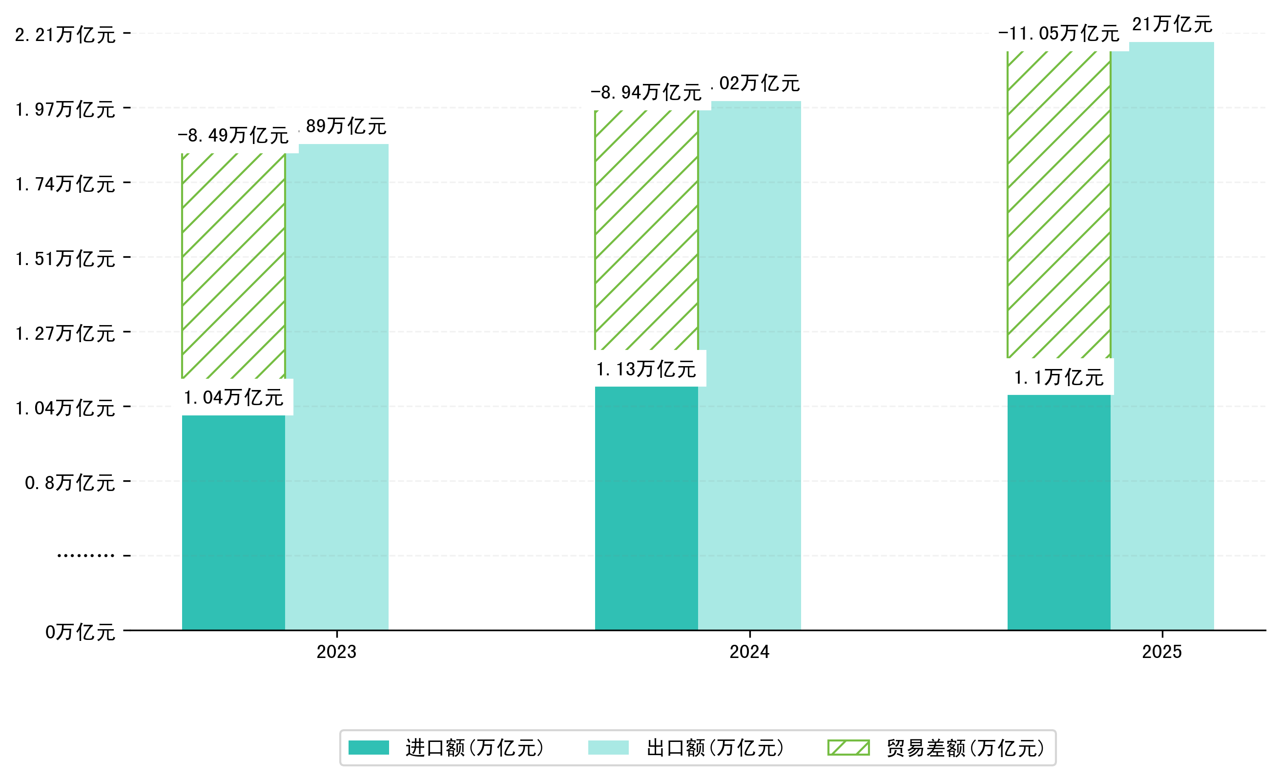 以人民币计,2025年1-7月江苏省贸易差额为1,1045,6449,2310万元(贸易顺差),相比上年同期增加了2108,1939,2686万元,同比增加23.59%。