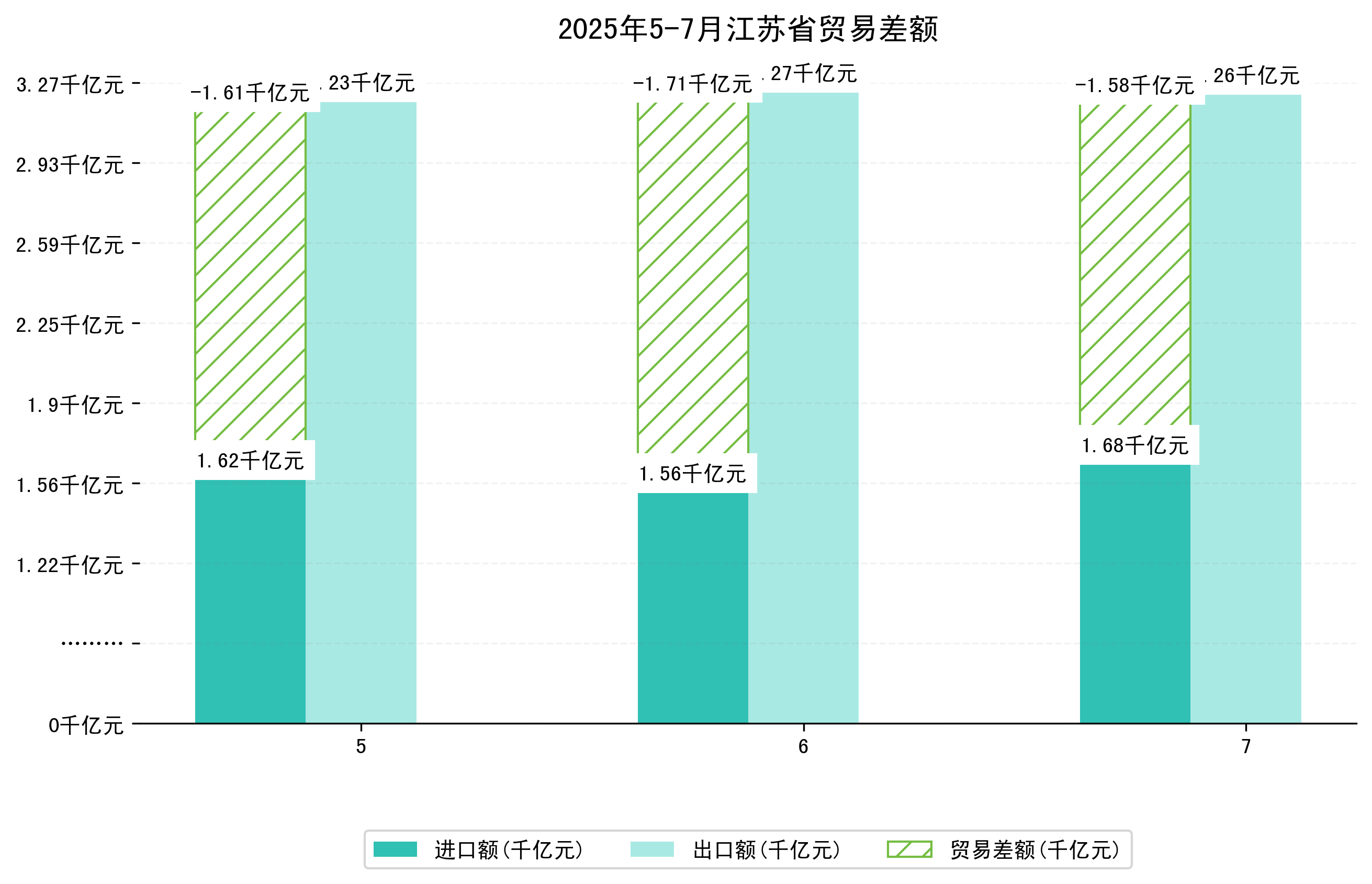 2025年7月江苏省进出口总额及进出口差额统计分析
