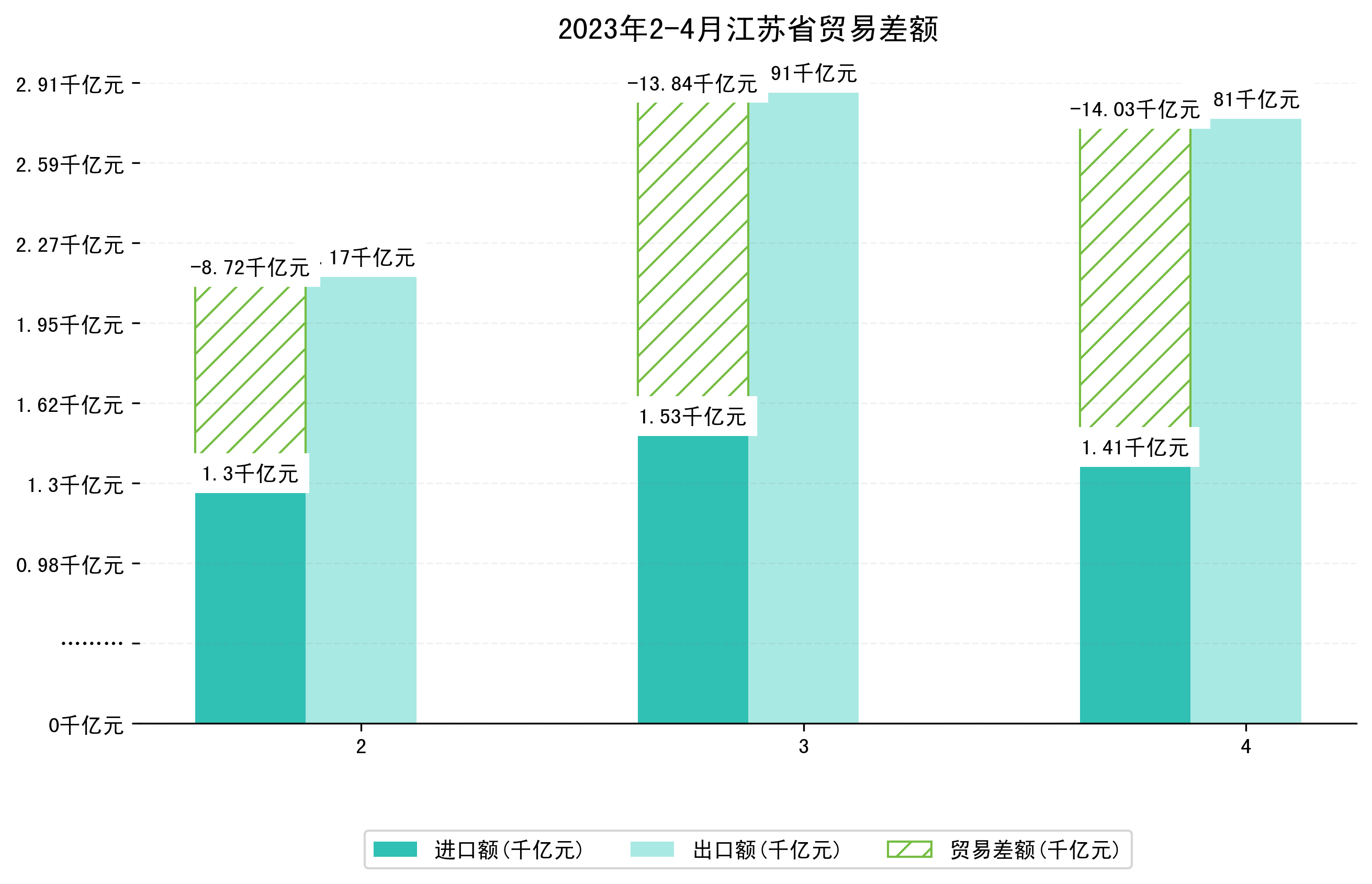 (图四:2023年2-4月江苏省贸易差额)