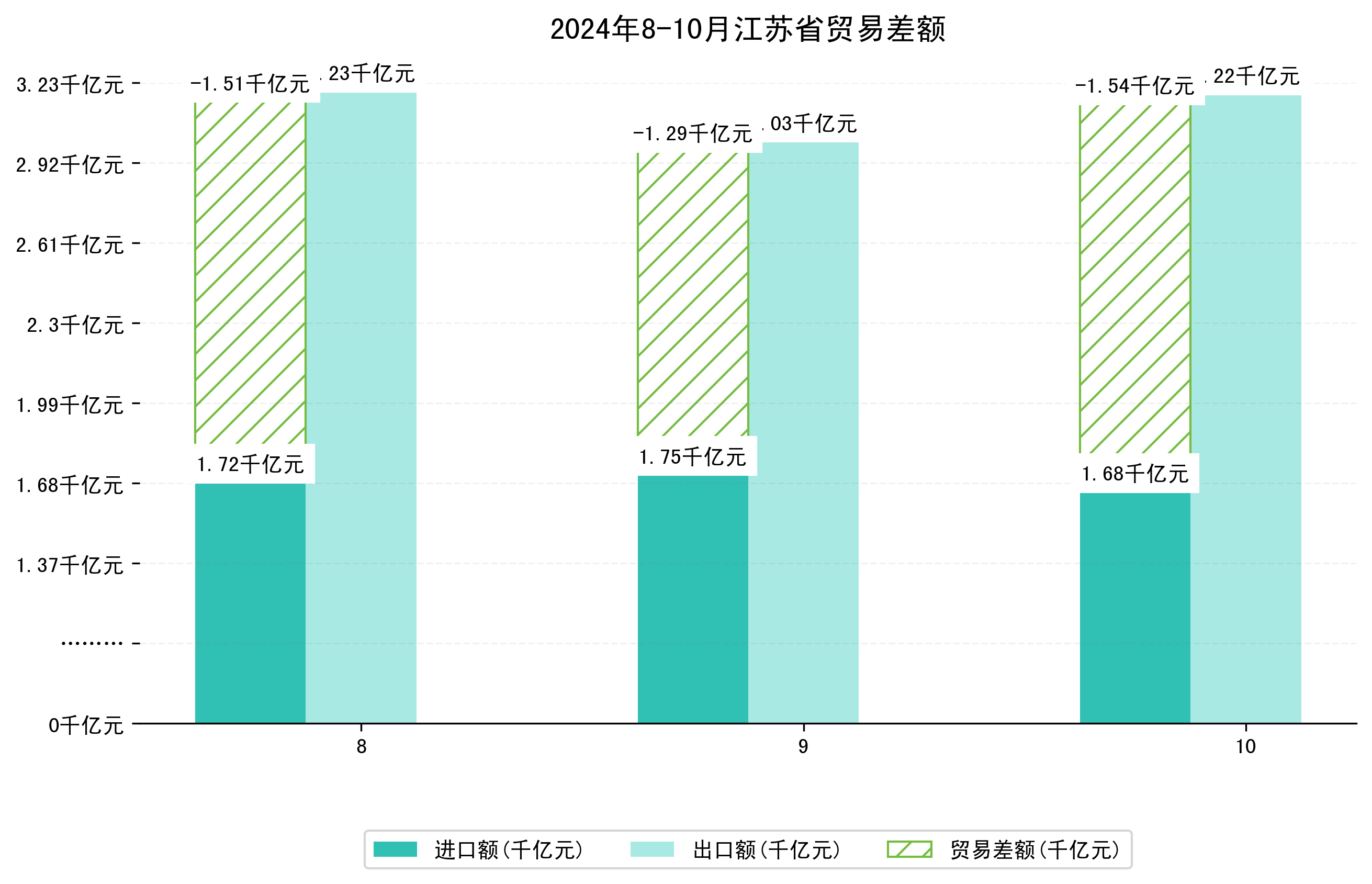 (图四:2024年8-10月江苏省贸易差额)