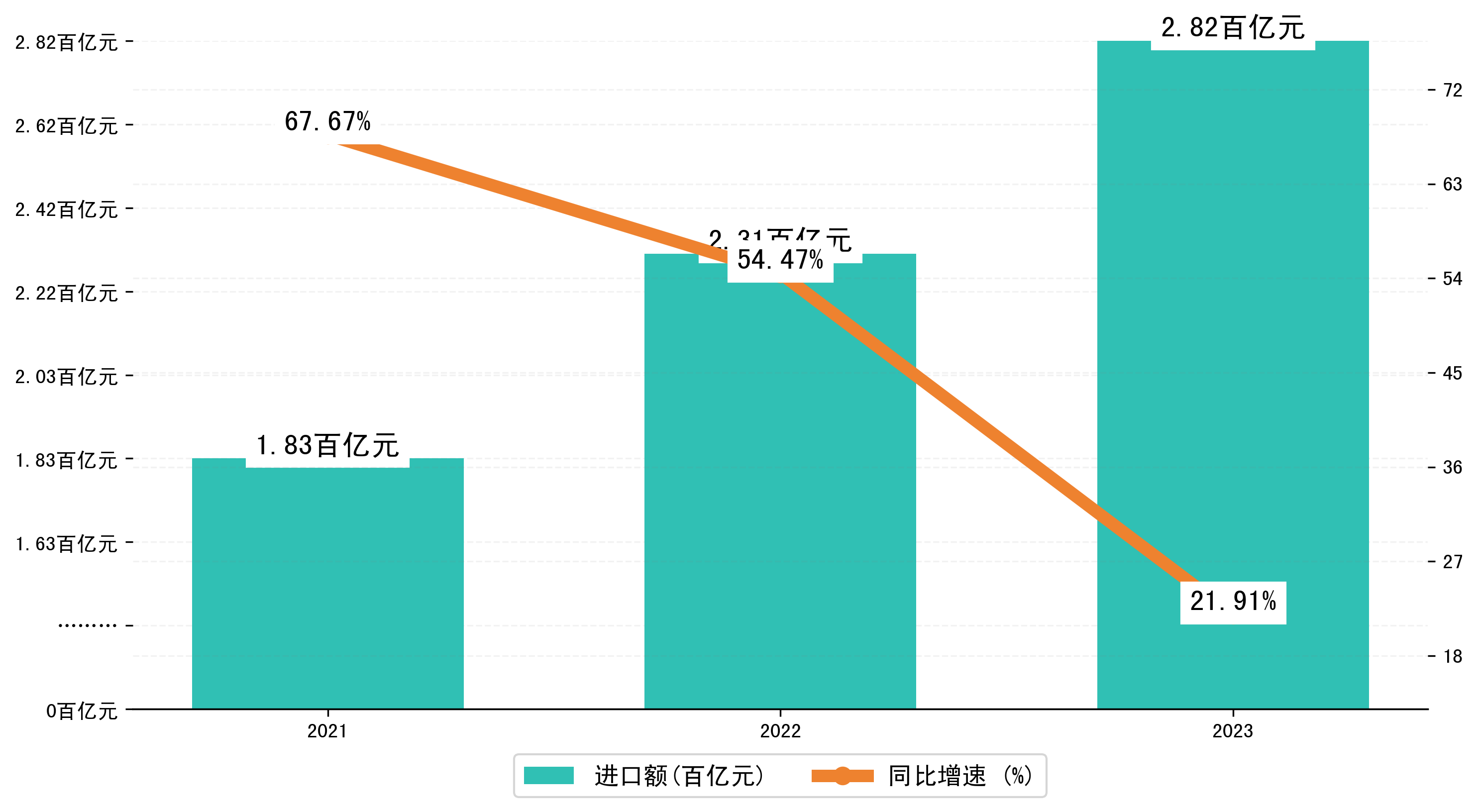 以人民币计,2023年1-2月江西省进口额为282,1941.7167万元,相比上年同期增加了50,7164.9669万元,同比增加了20.20%。