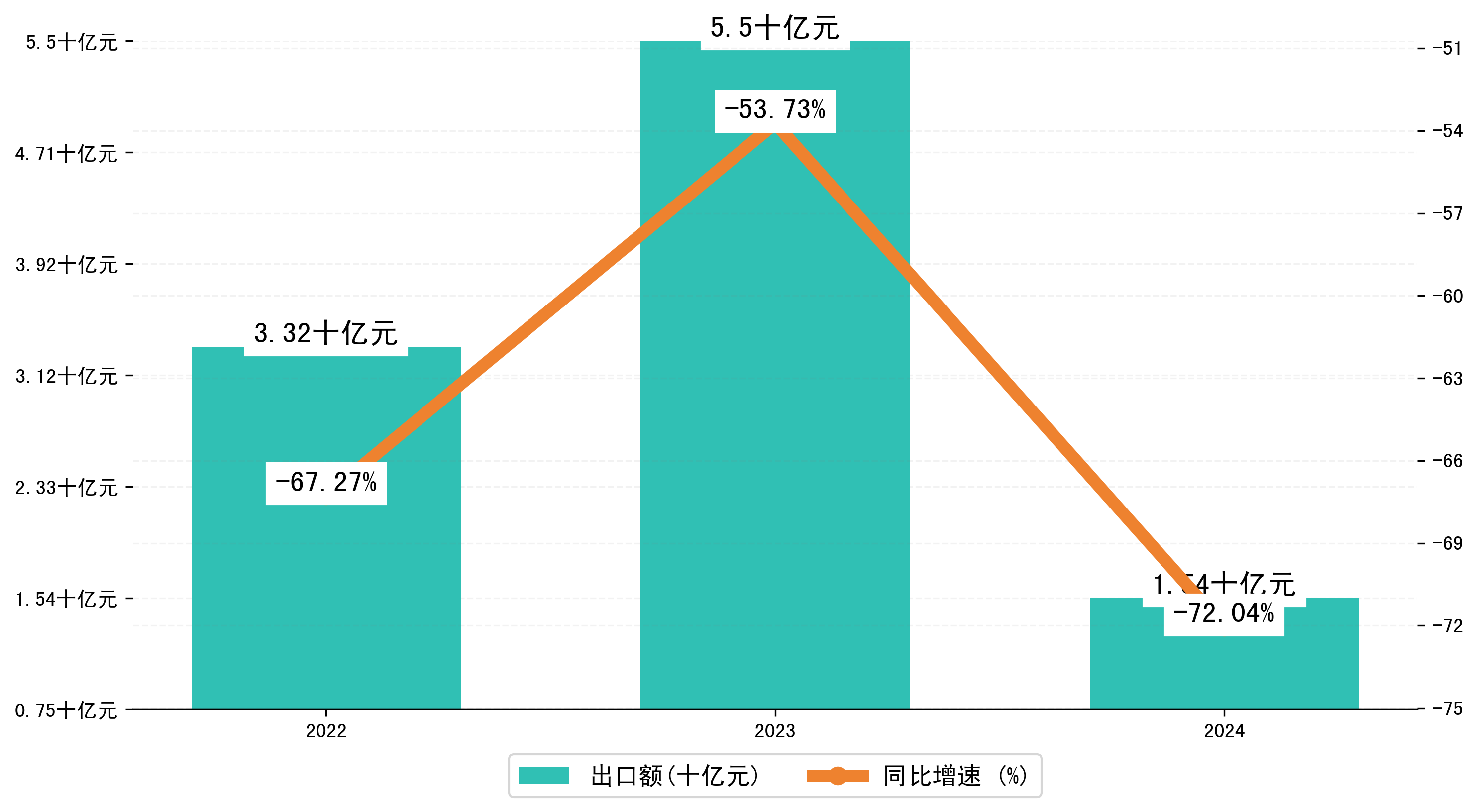 以美元计,2024年1-4月茂名市出口额为2,1630.0876万美元,相比上年同期减少了5,8338.885万美元,同比减少-9.80%。