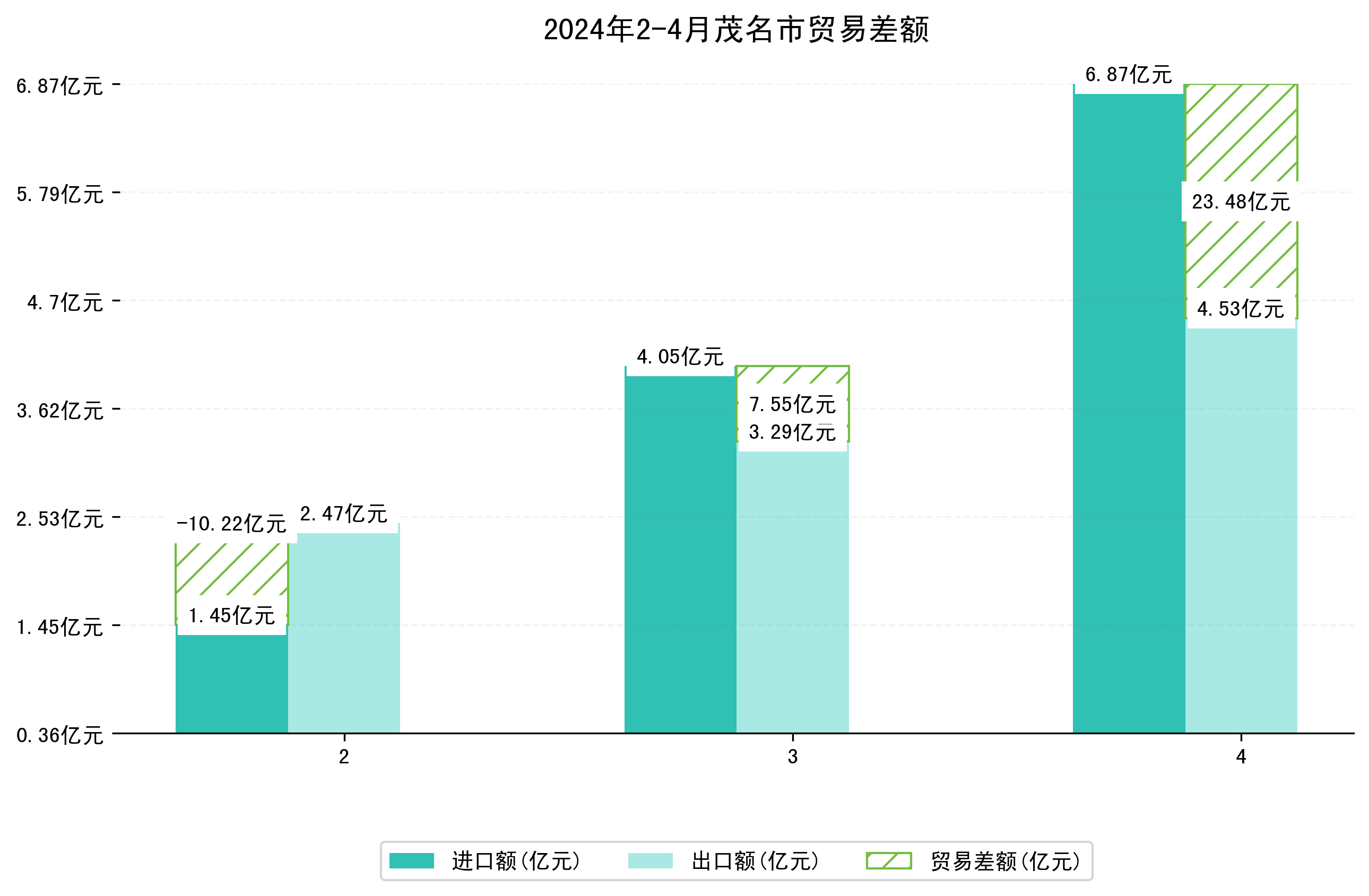 2024年4月茂名市进出口总额及进出口差额统计分析