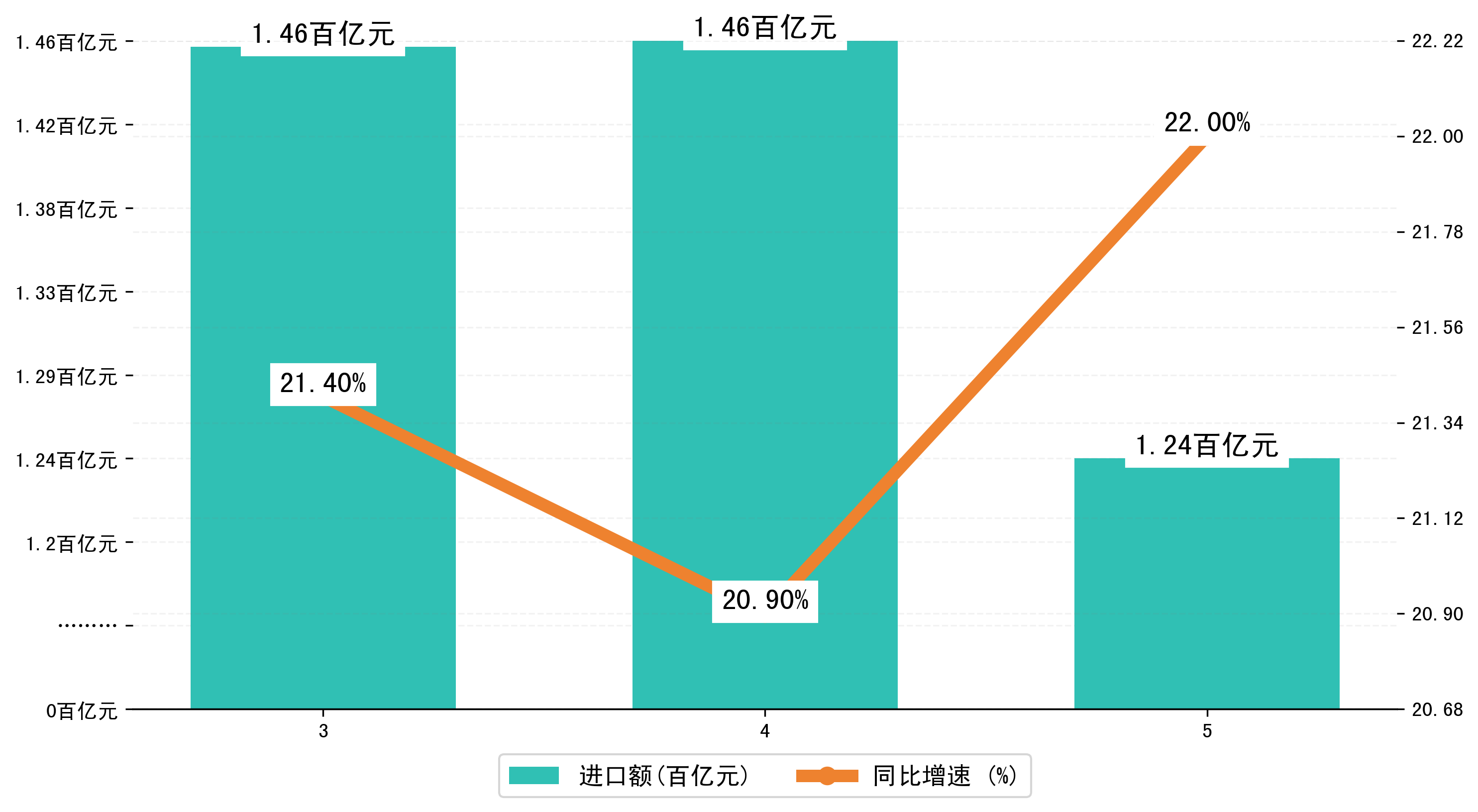 以人民币计,2023年5月江西省进口额为124,4873.454万元,相比上月减少了21,7909.8723万元;相比上年同期增加了19,2305.7002万元,同比增加了22.00%。