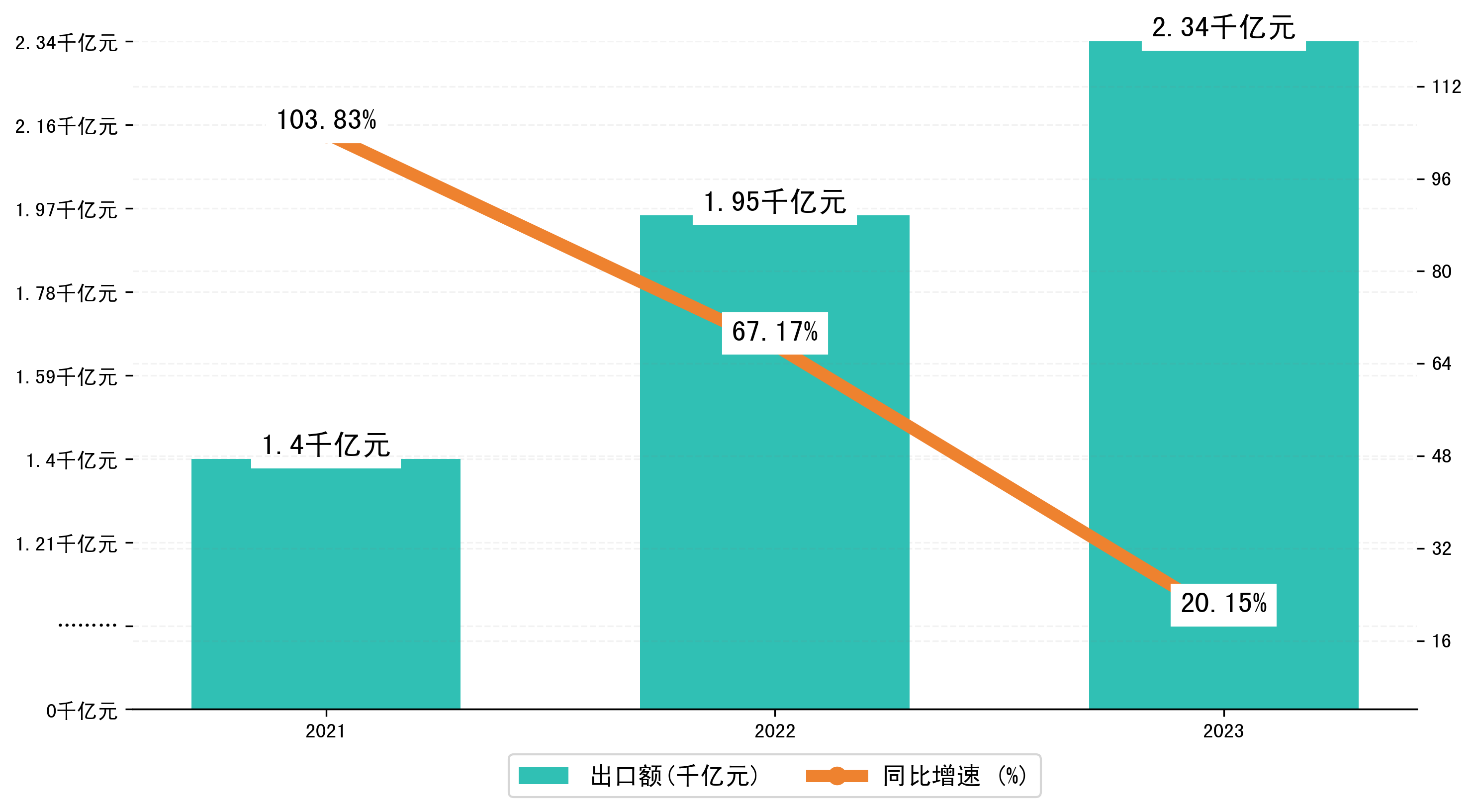 以美元计,2023年1-5月江西省出口额为340,9088.7556万美元,相比上年同期增加了35,0646.3098万美元,同比增加13.00%。