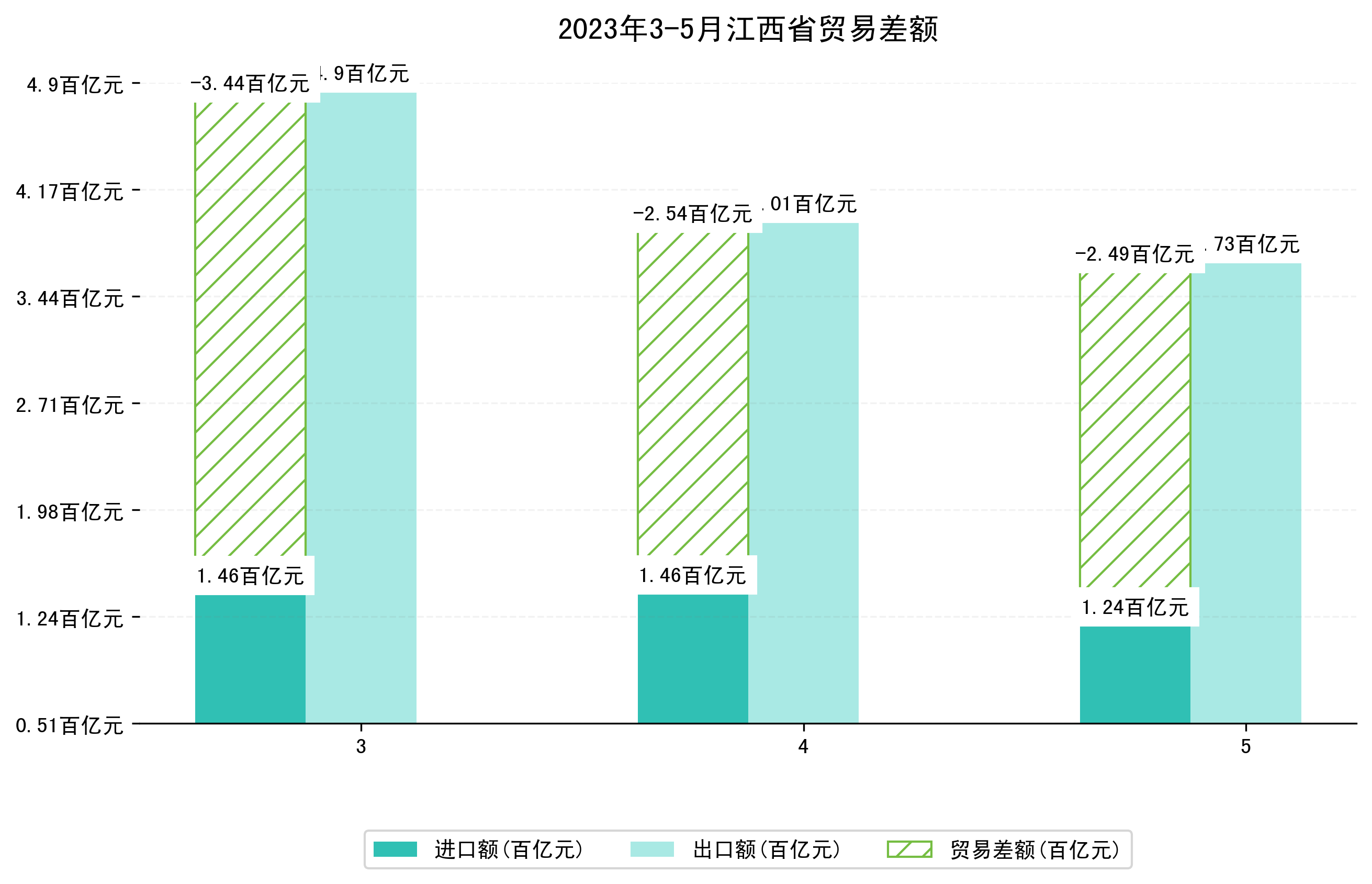 以美元计,2023年1-5月江西省贸易差额为239,1114,1473万美元(贸易顺差),相比上年同期增加了24,2390,8917万美元,同比增加11.28%。