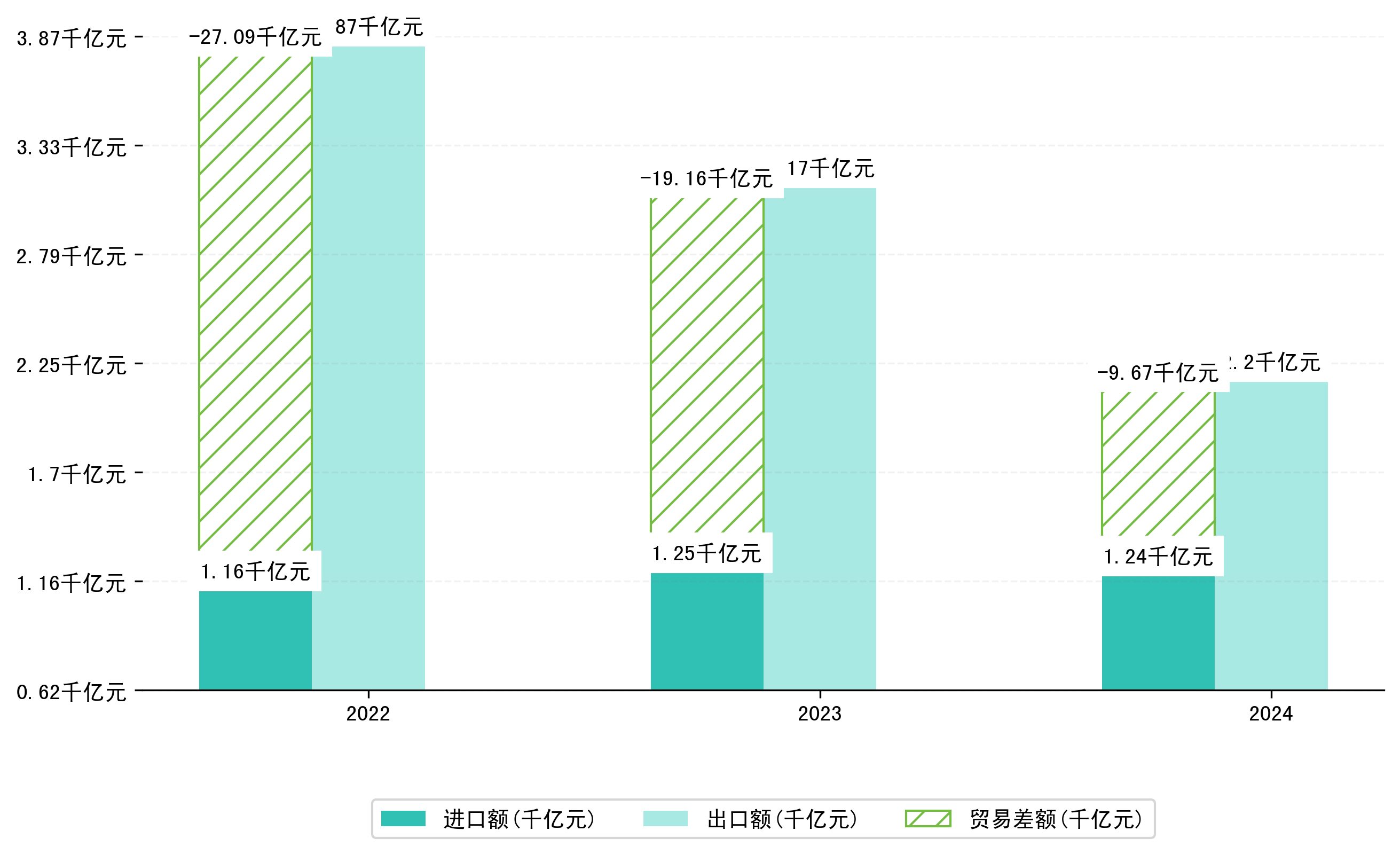 以人民币计,2024年9月江西省贸易差额为112,7560,5556万元(贸易顺差),相比上月增加了16,6515,4239万元,即2,3431,4722万美元;相比上年同期减少了19,2082,2607万元,同比减少-14.56%。