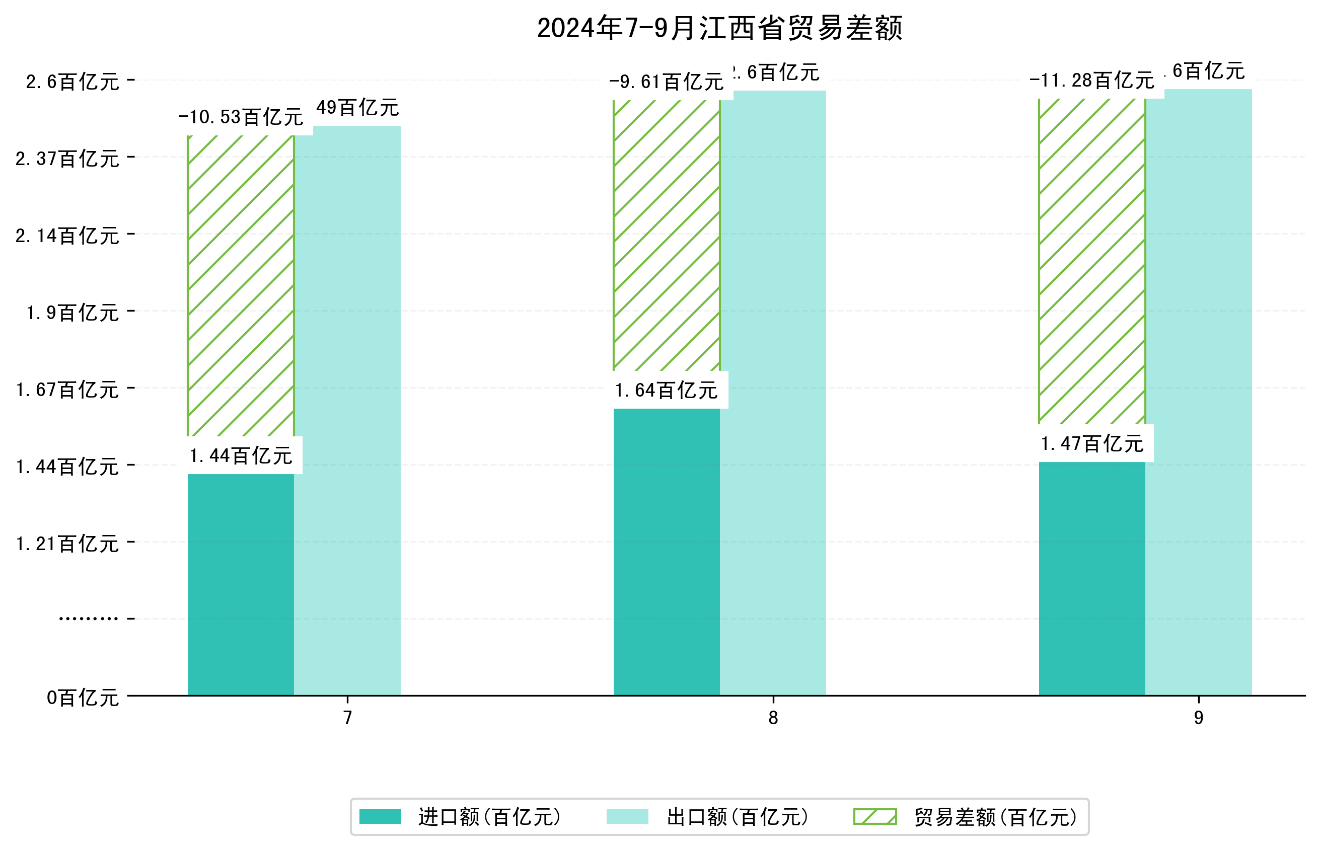 一、2024年9月江西省单月出口总额及进出口差额统计分析