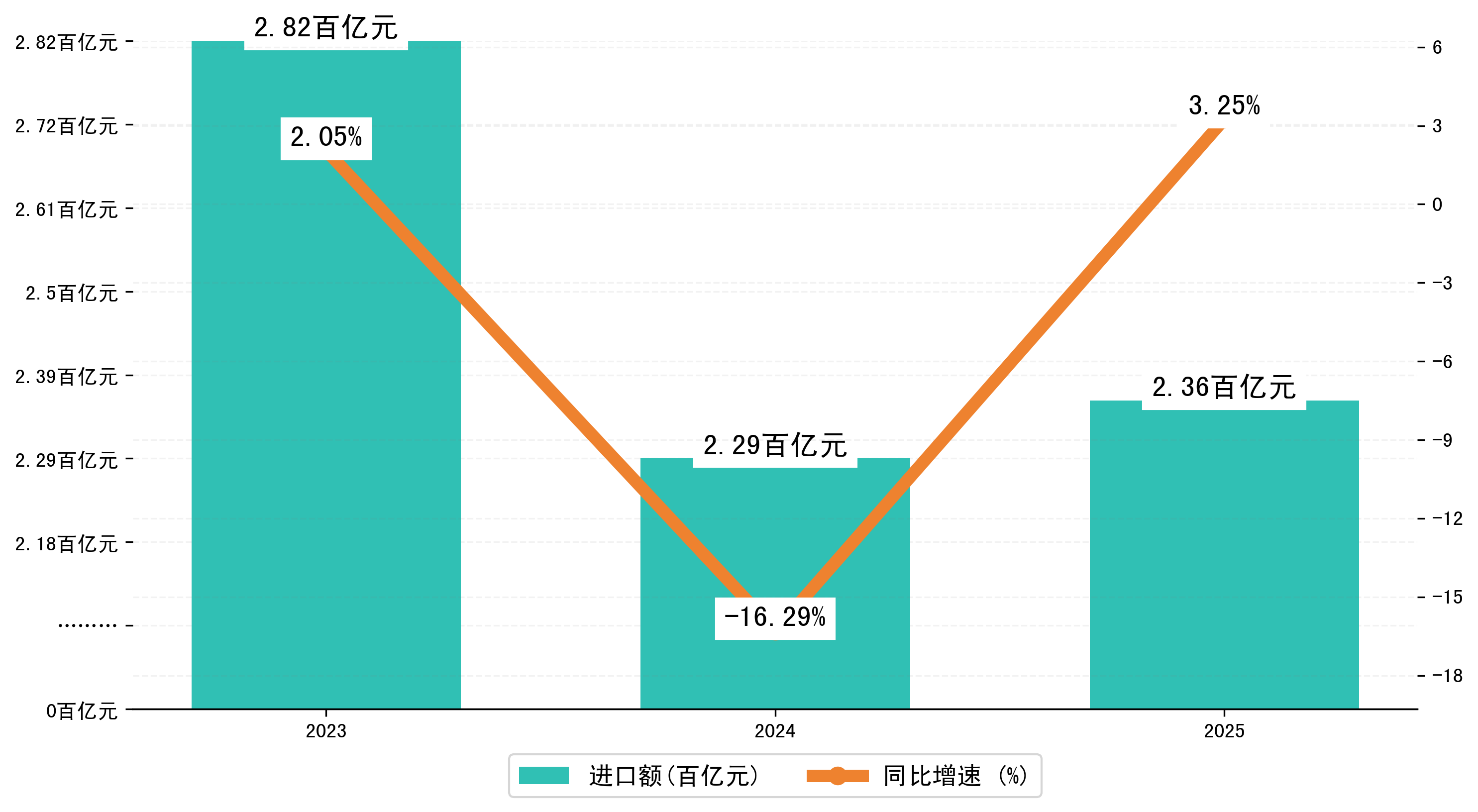 以人民币计,2025年1-2月江西省进口额为236,2240.5057万元,相比上年同期增加了7,4276.7079万元,同比增加了5.40%。