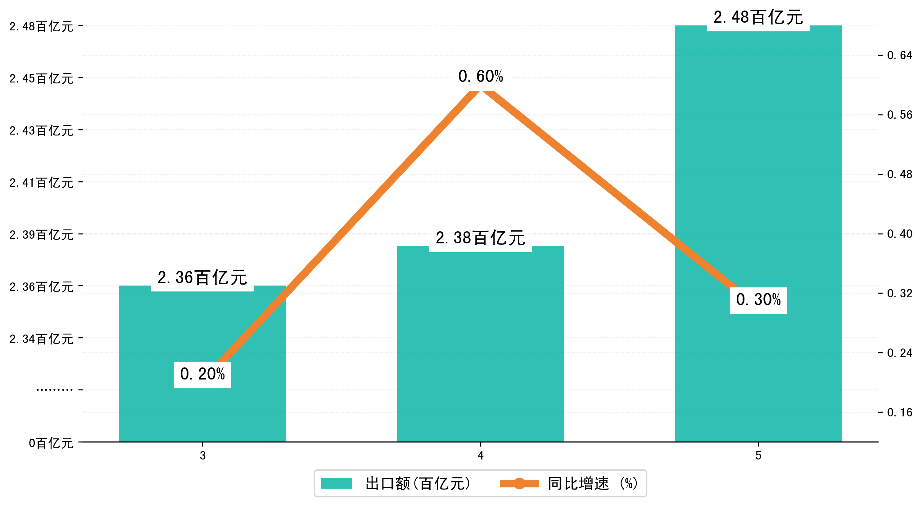 以人民币计,2025年5月江西省出口额为247,5849.7491万元,相比上月增加了9,5533.8659万元;相比上年同期减少了2,4896.2818万元,同比增加了0.30%。