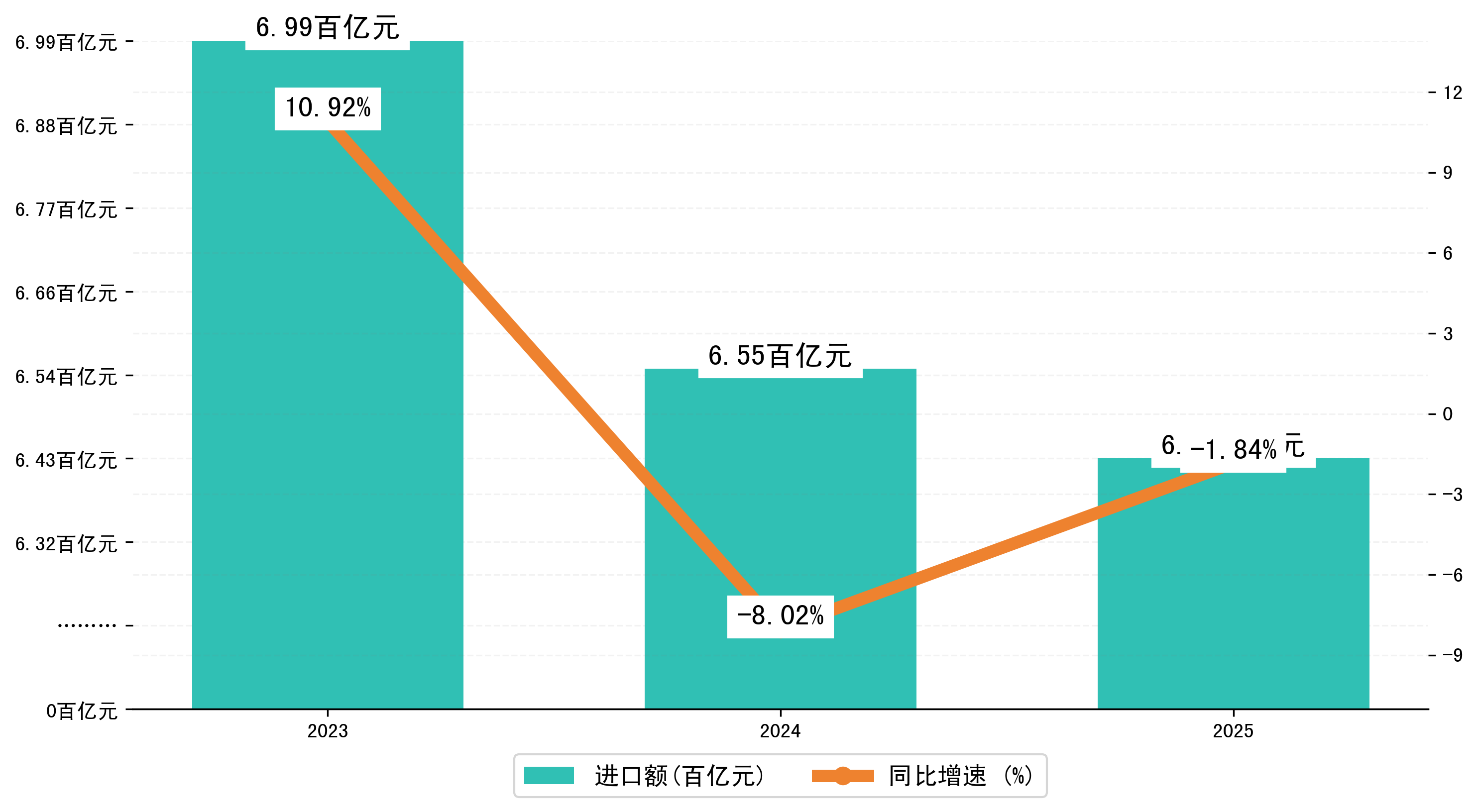 以人民币计,2025年1-5月江西省进口额为643,2663.4958万元,相比上年同期减少了12,0724.7924万元,同比减少了-2.70%。