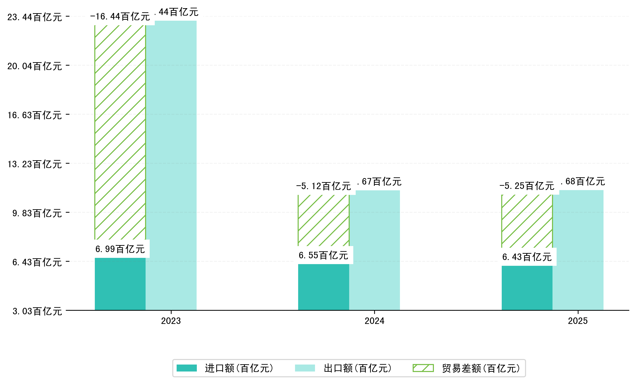 以美元计,2025年1-5月江西省贸易差额为73,0531,8224万美元(贸易顺差),相比上年同期增加了9600,4067万美元,同比增加1.33%。