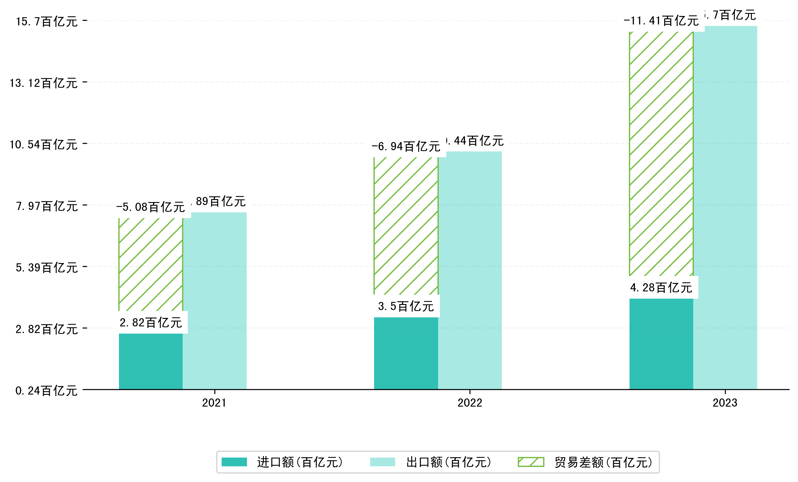 以美元计,2023年1-3月江西省贸易差额为165,9039,5581万美元(贸易顺差),相比上年同期增加了56,8831,6016万美元,同比增加52.18%。